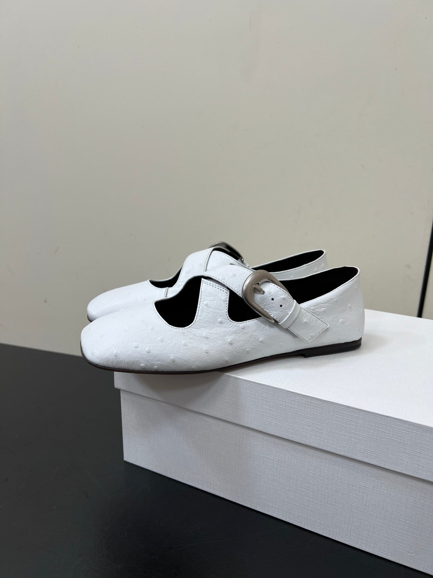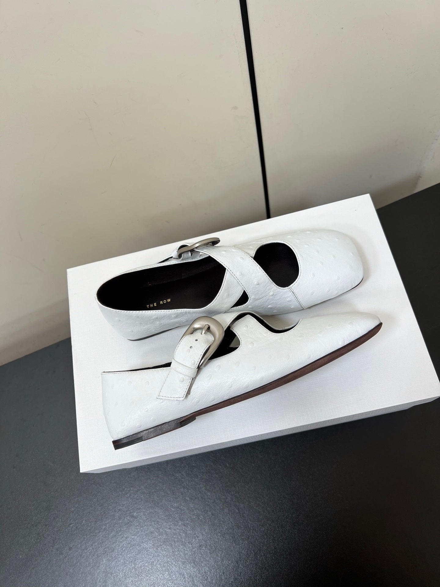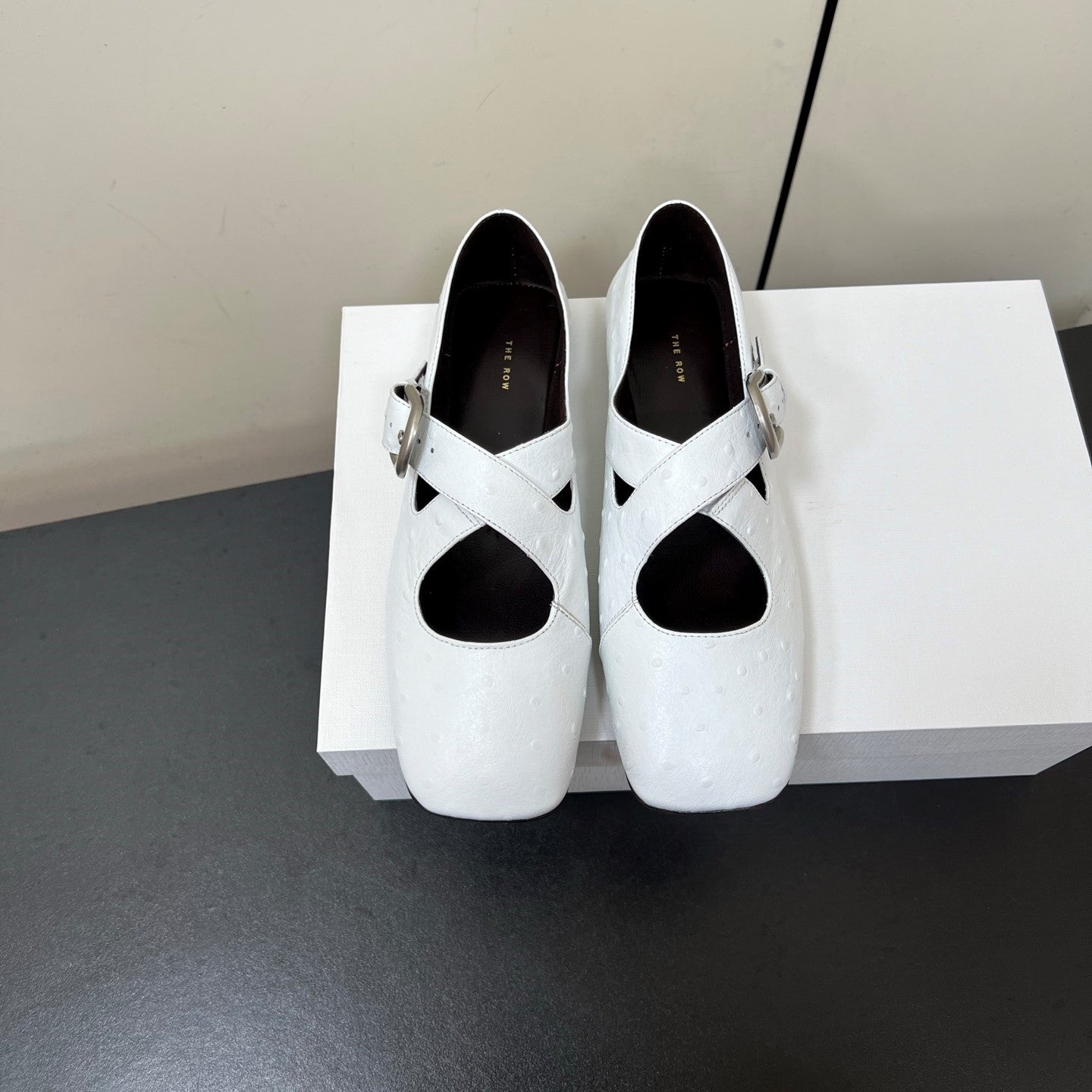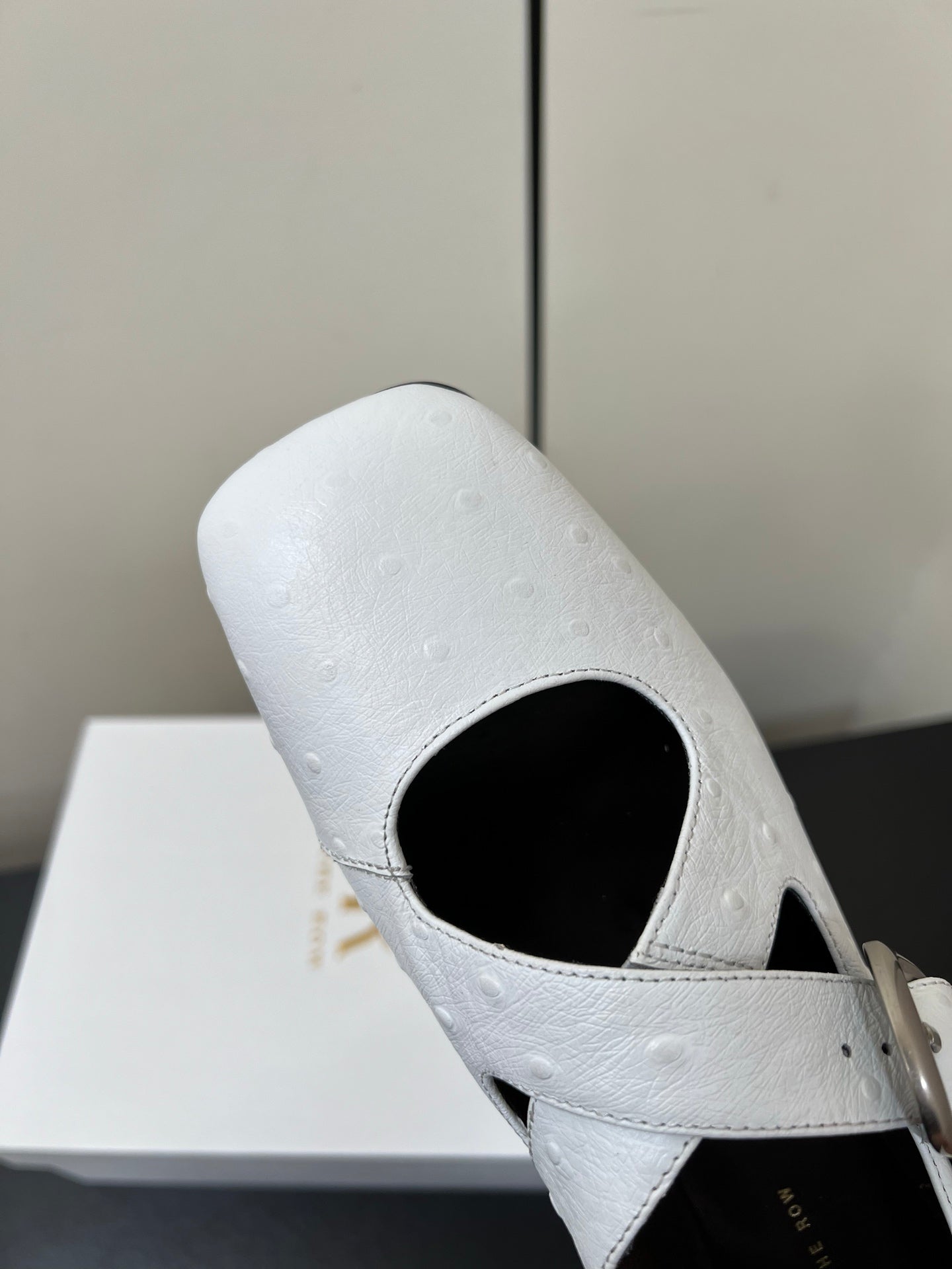 The Row Gaia Criss Mary Jane White Ostrich Leather 340002