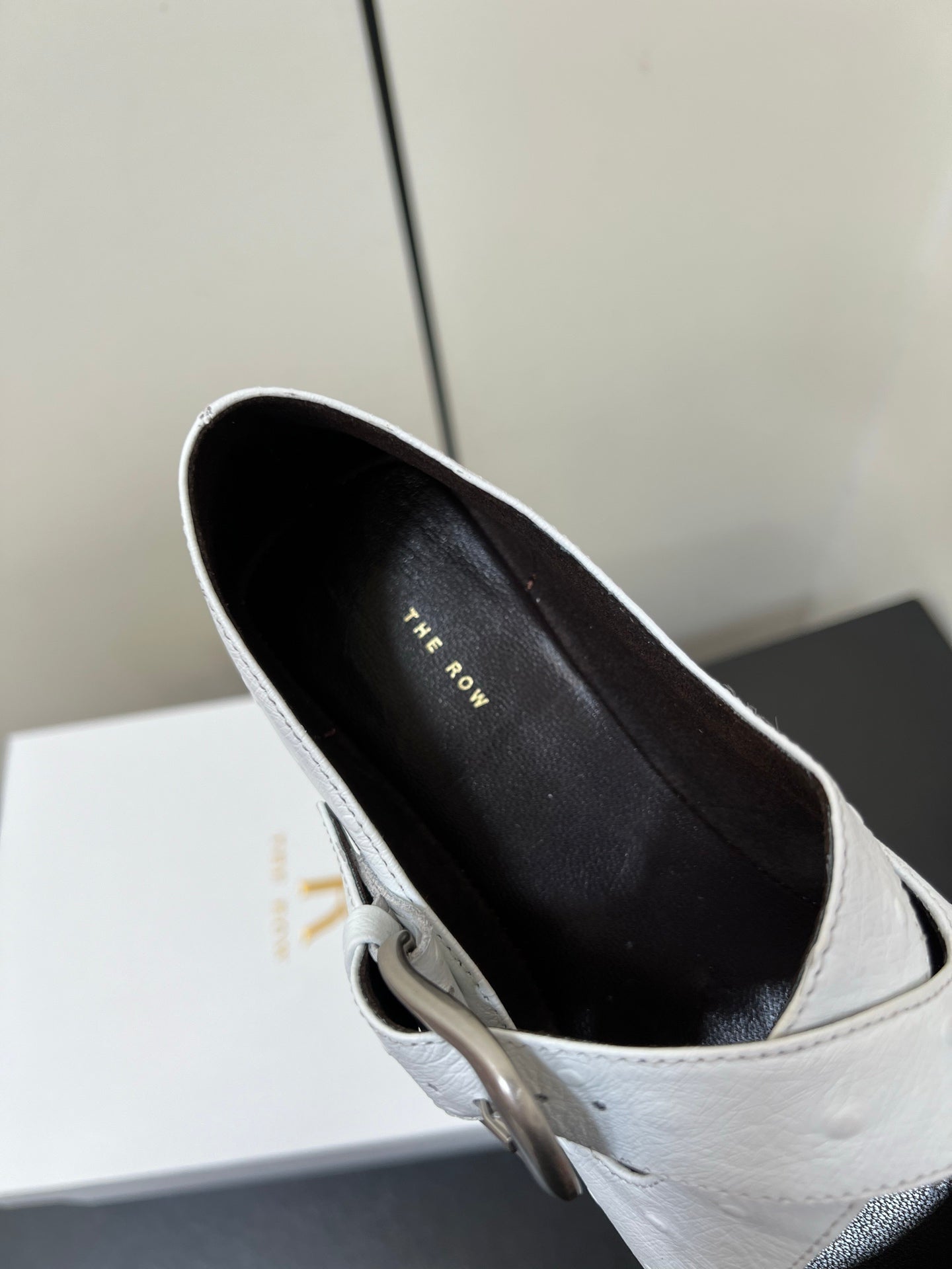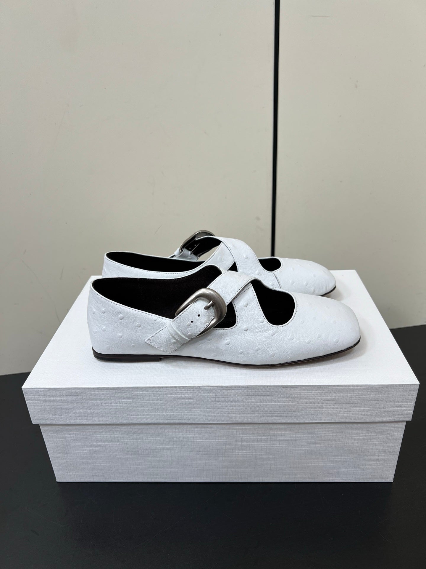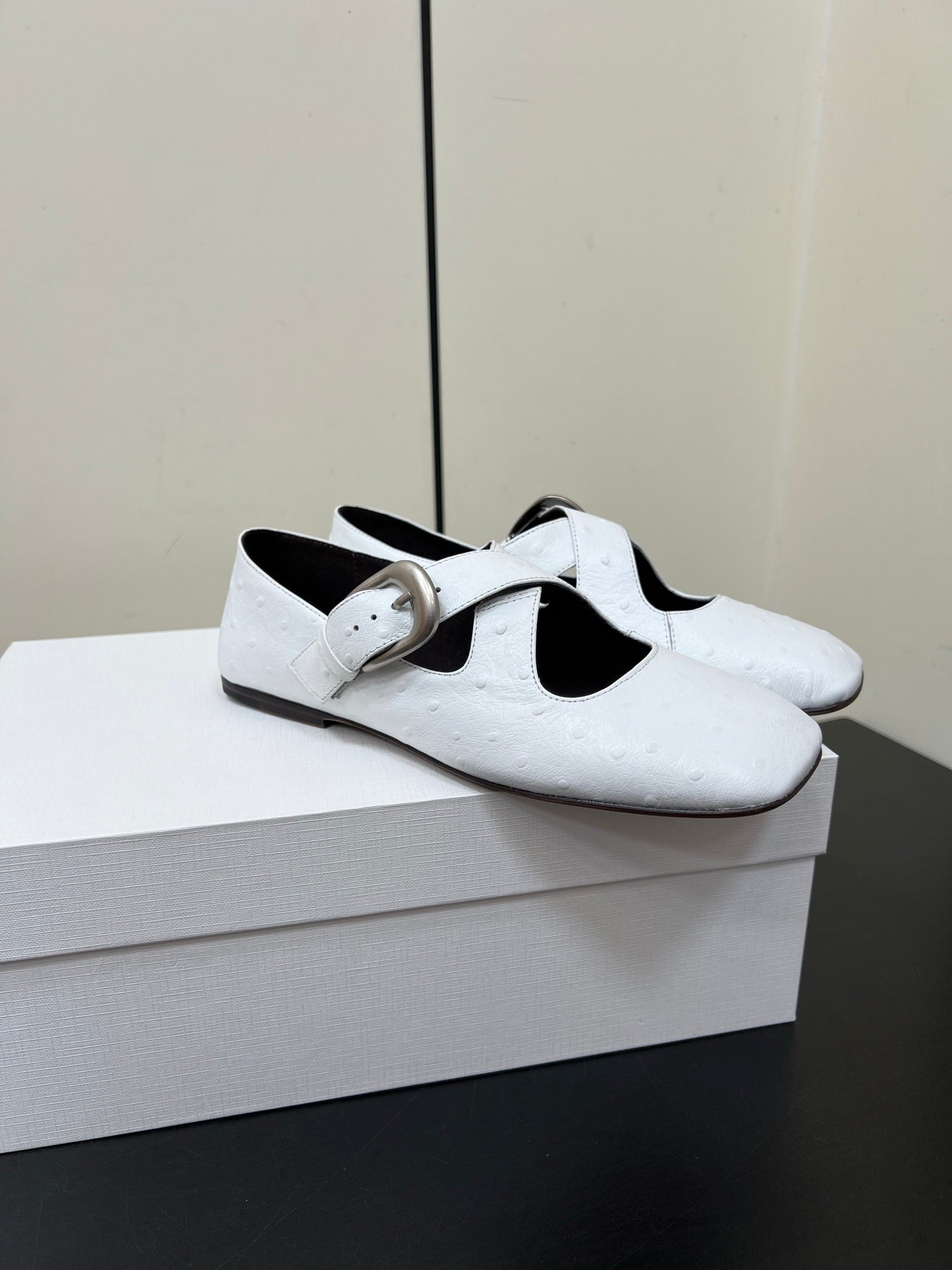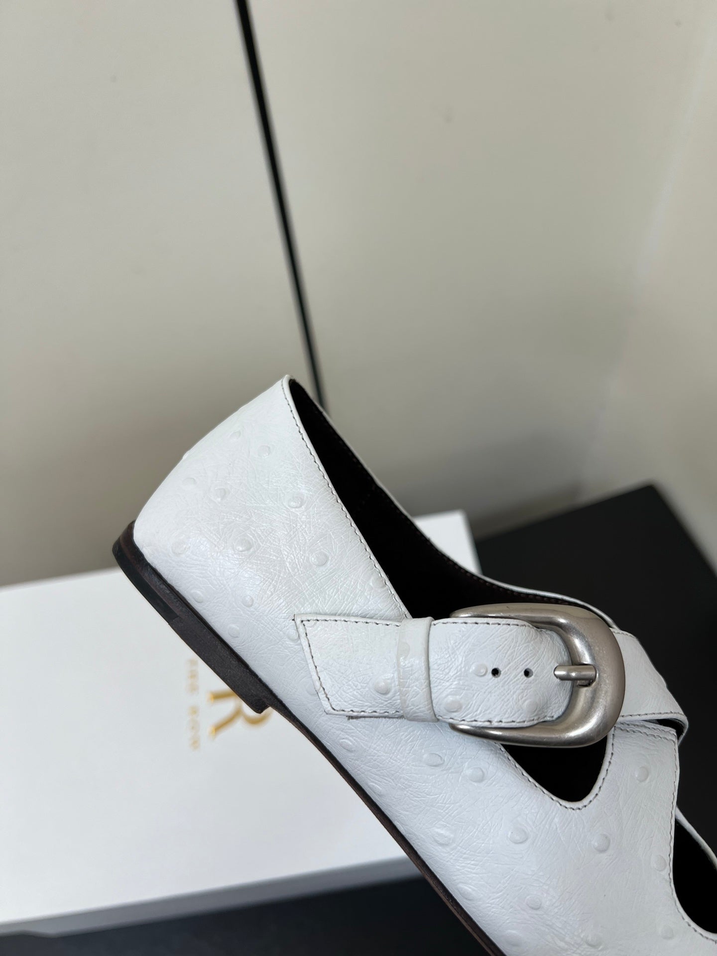 The Row Gaia Criss Mary Jane White Ostrich Leather 340002