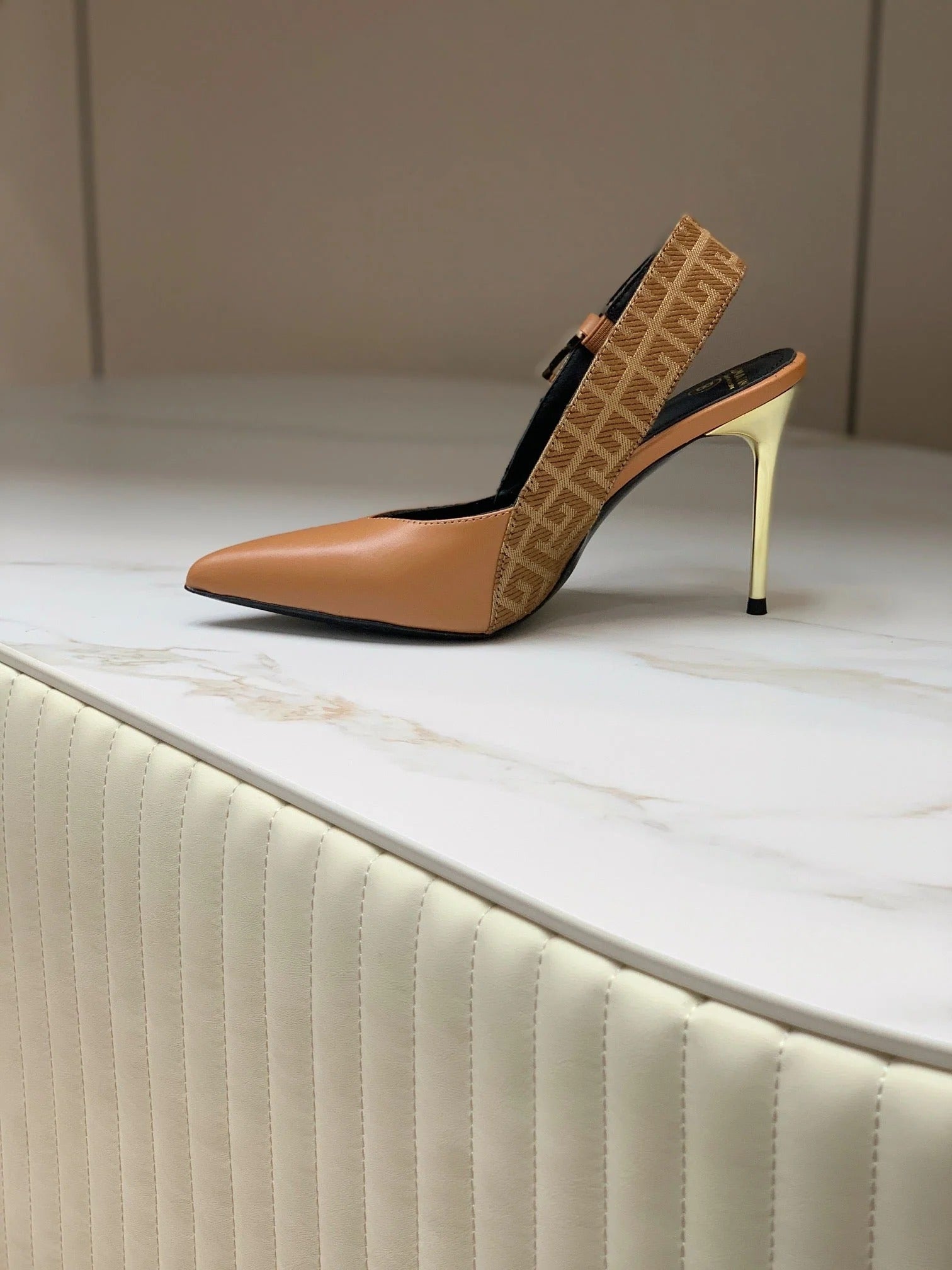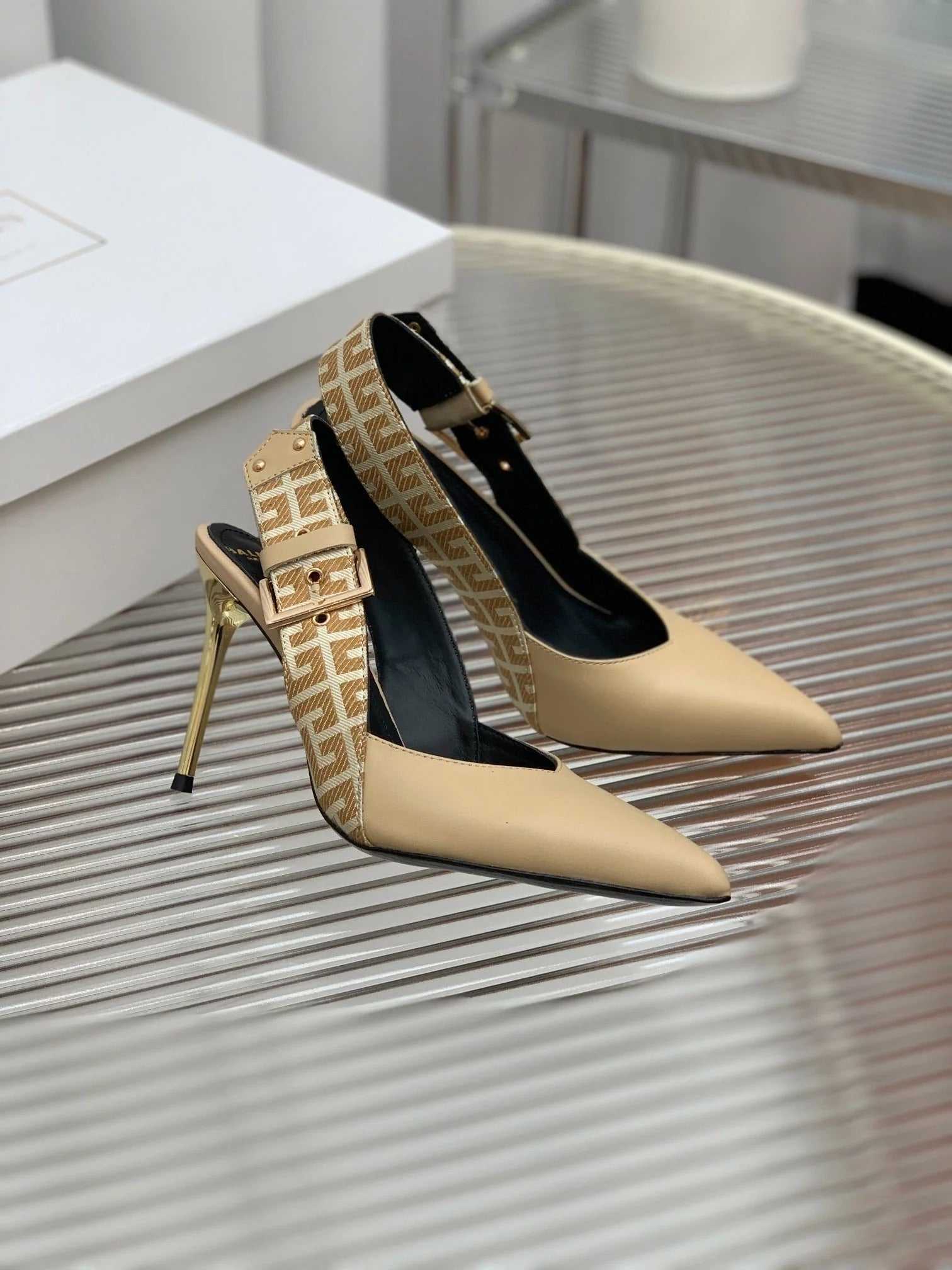 BALMAIN 25S SLINGBACK SHOES 95MM IN LIGHT BROWN CALFSKIN