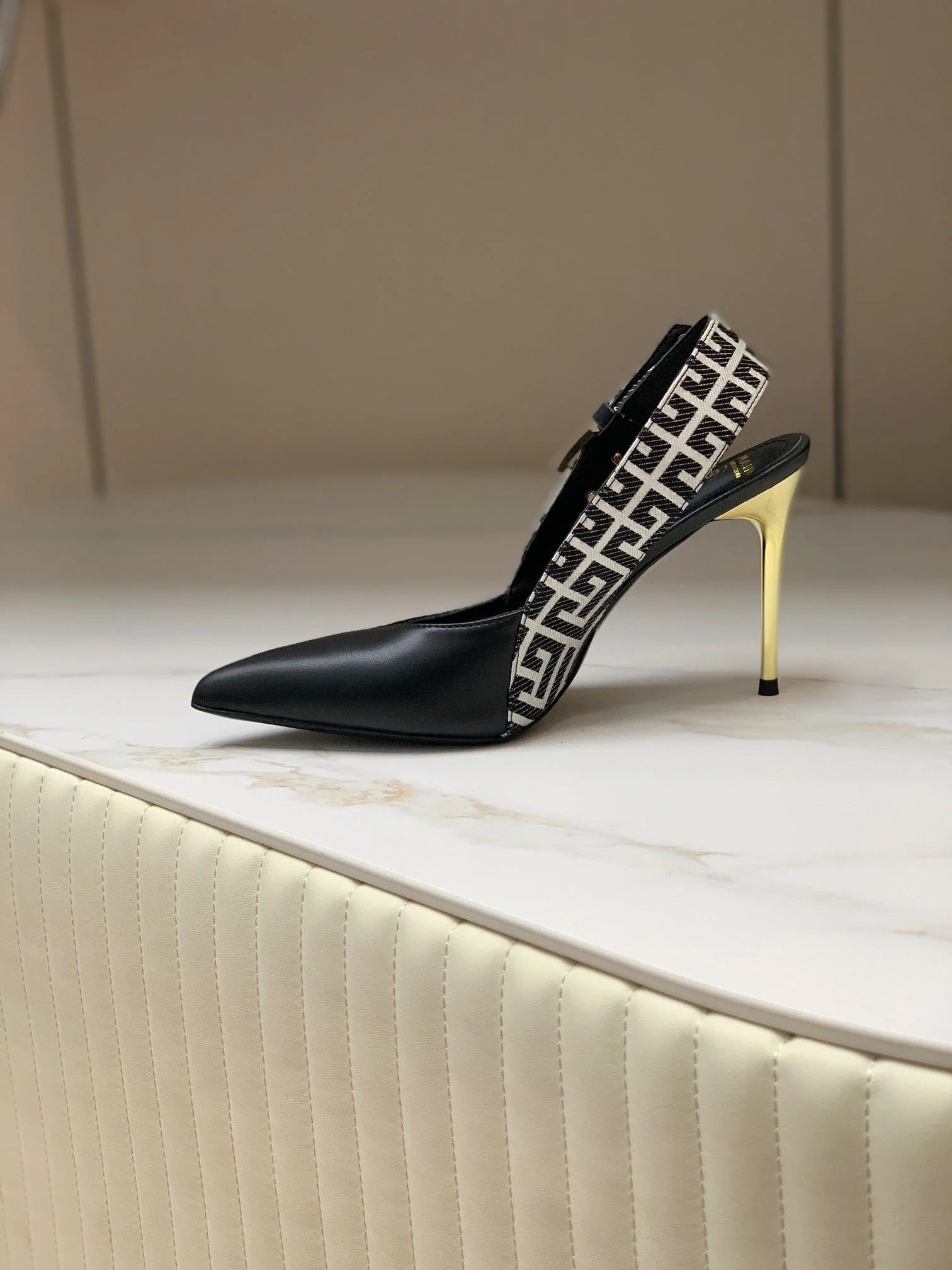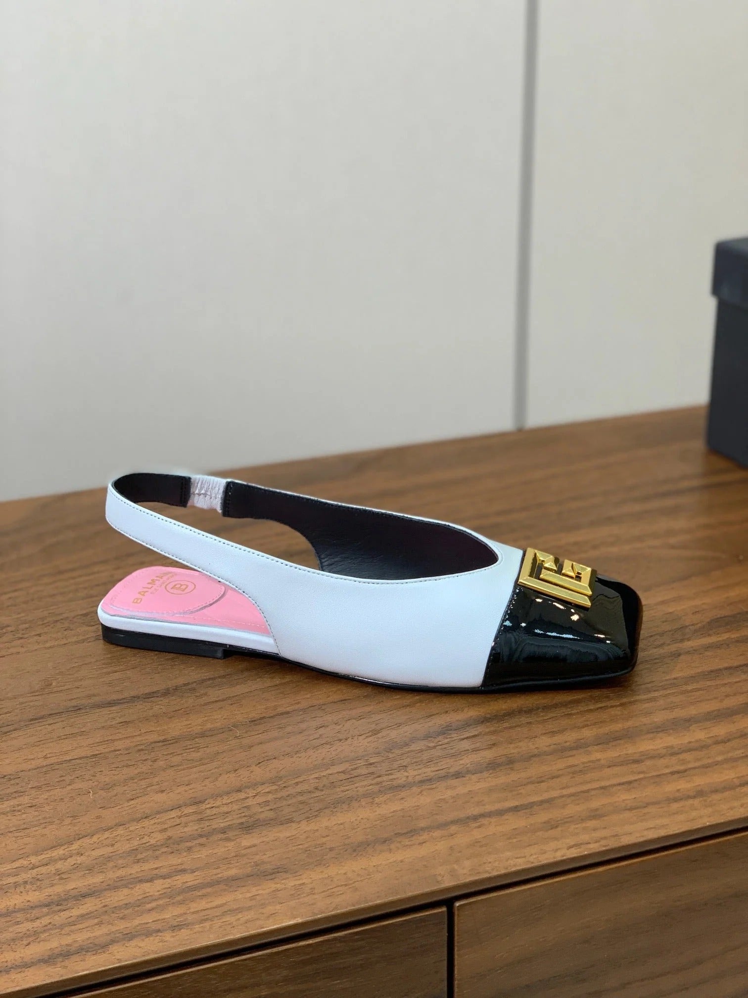 BALMAIN 25S FLAT EDEN SLINGBACKS IN BLACK AND WHITE CALFSKIN