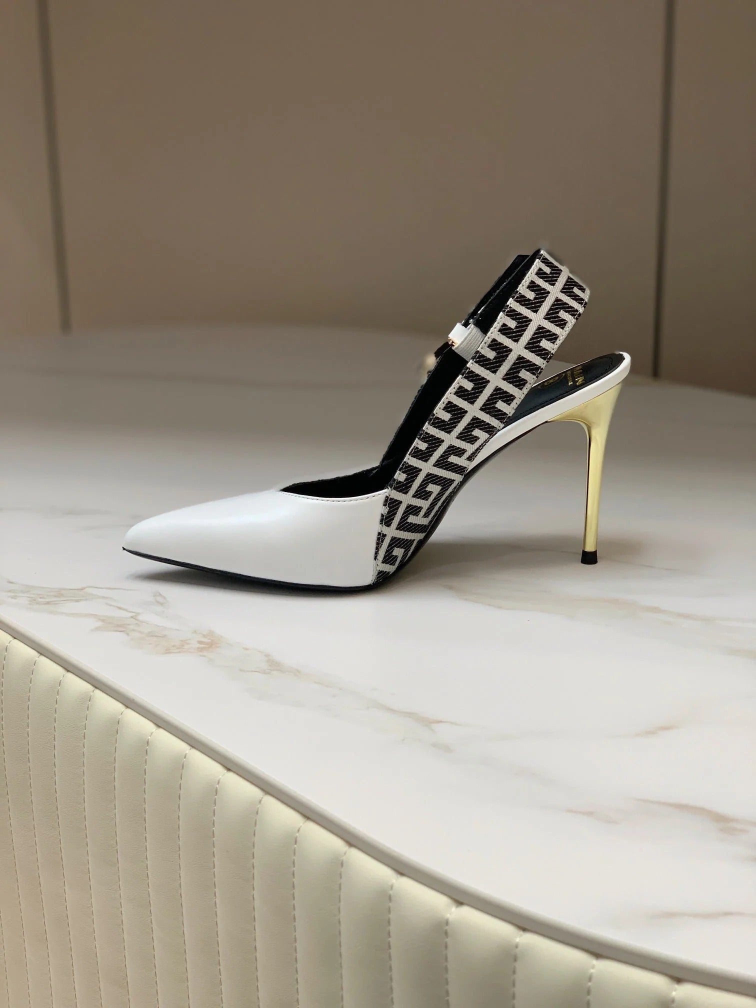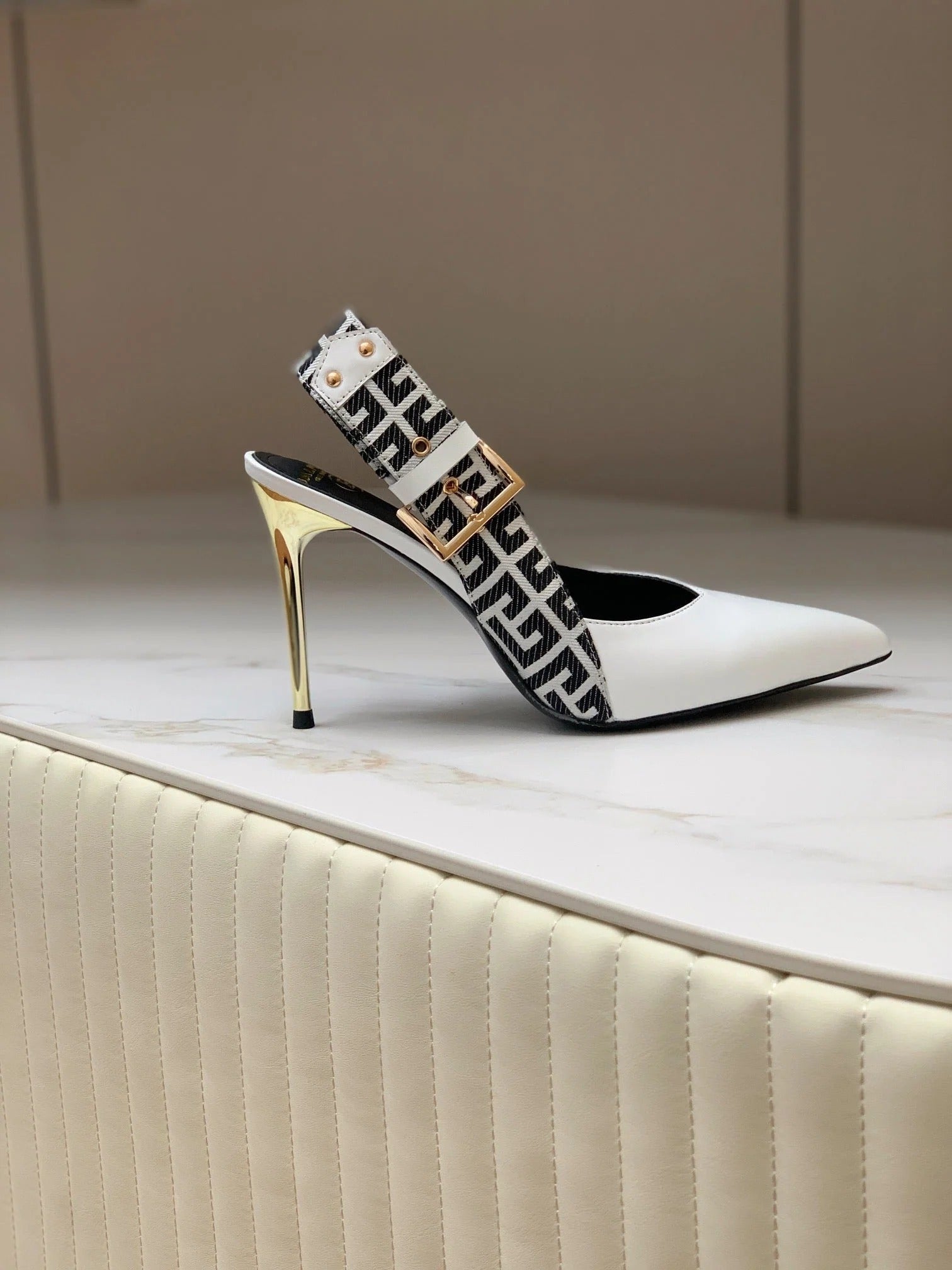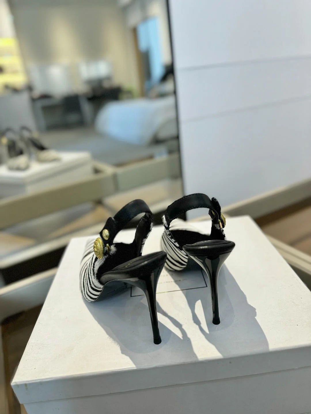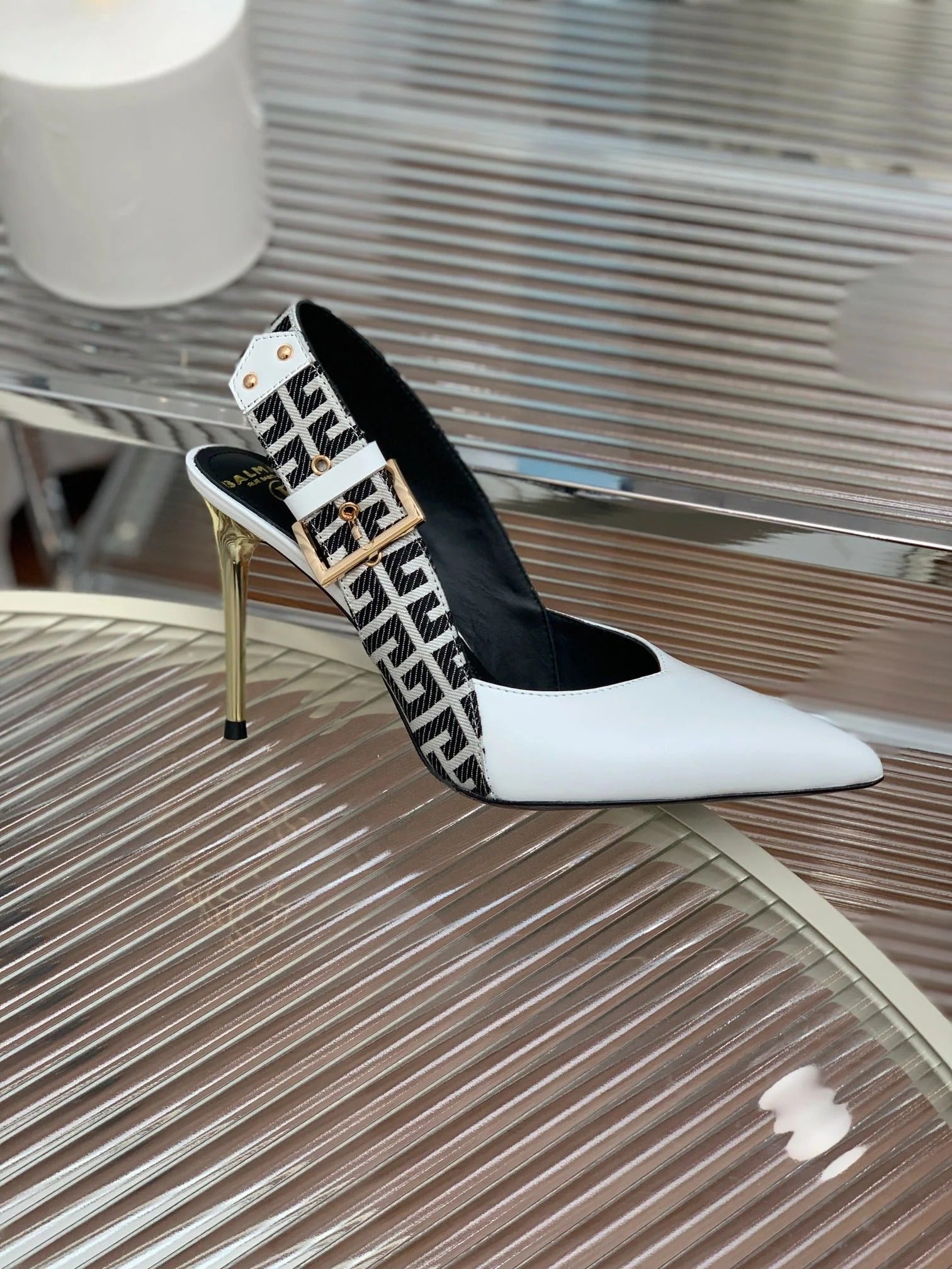 BALMAIN 25S SLINGBACK EVA 95MM IN WHITE AND BLACK ZEBRA PRINT CALFSKIN