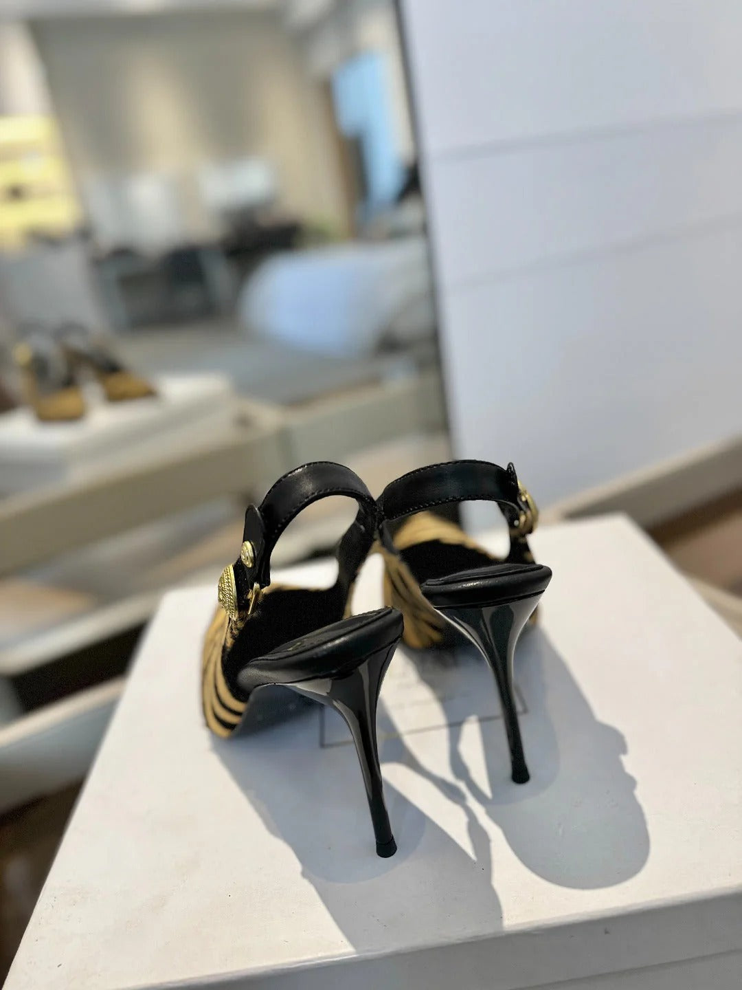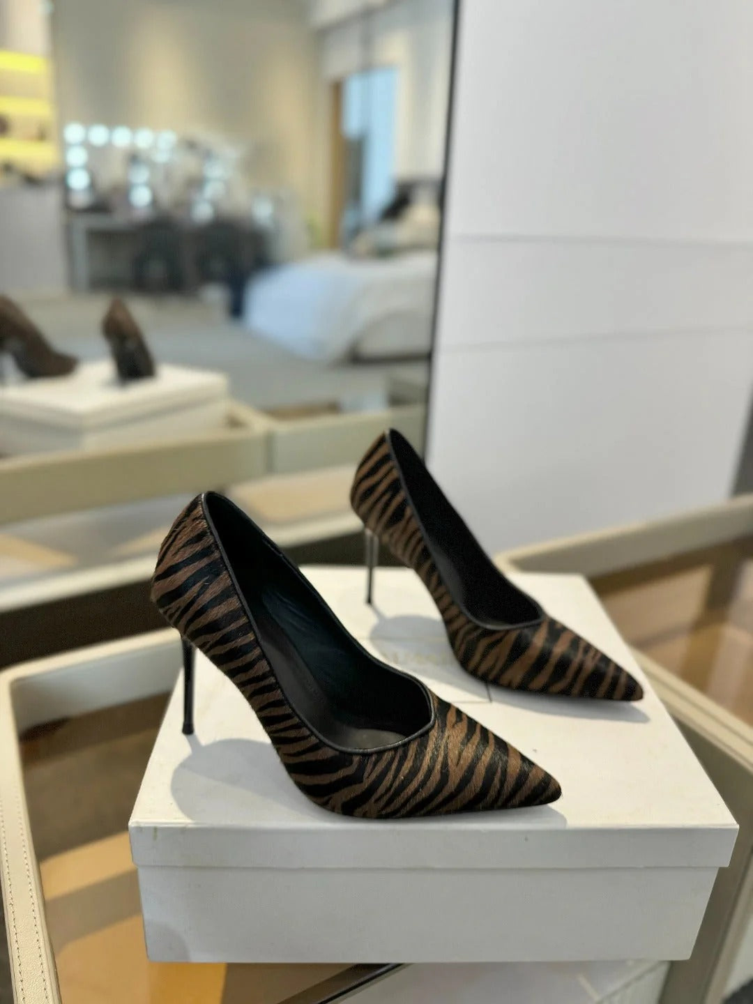 BALMAIN 25S HIGH HEELS 95MM IN BROWN AND BLACK ZEBRA PRINT CALFSKIN