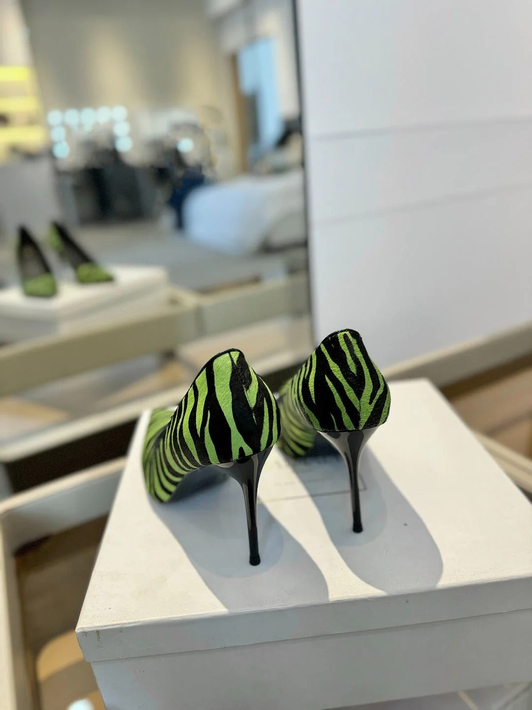 BALMAIN 25S HIGH HEELS 95MM IN GREEN AND BLACK ZEBRA PRINT CALFSKIN