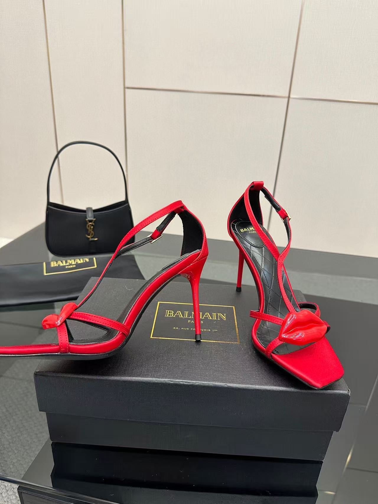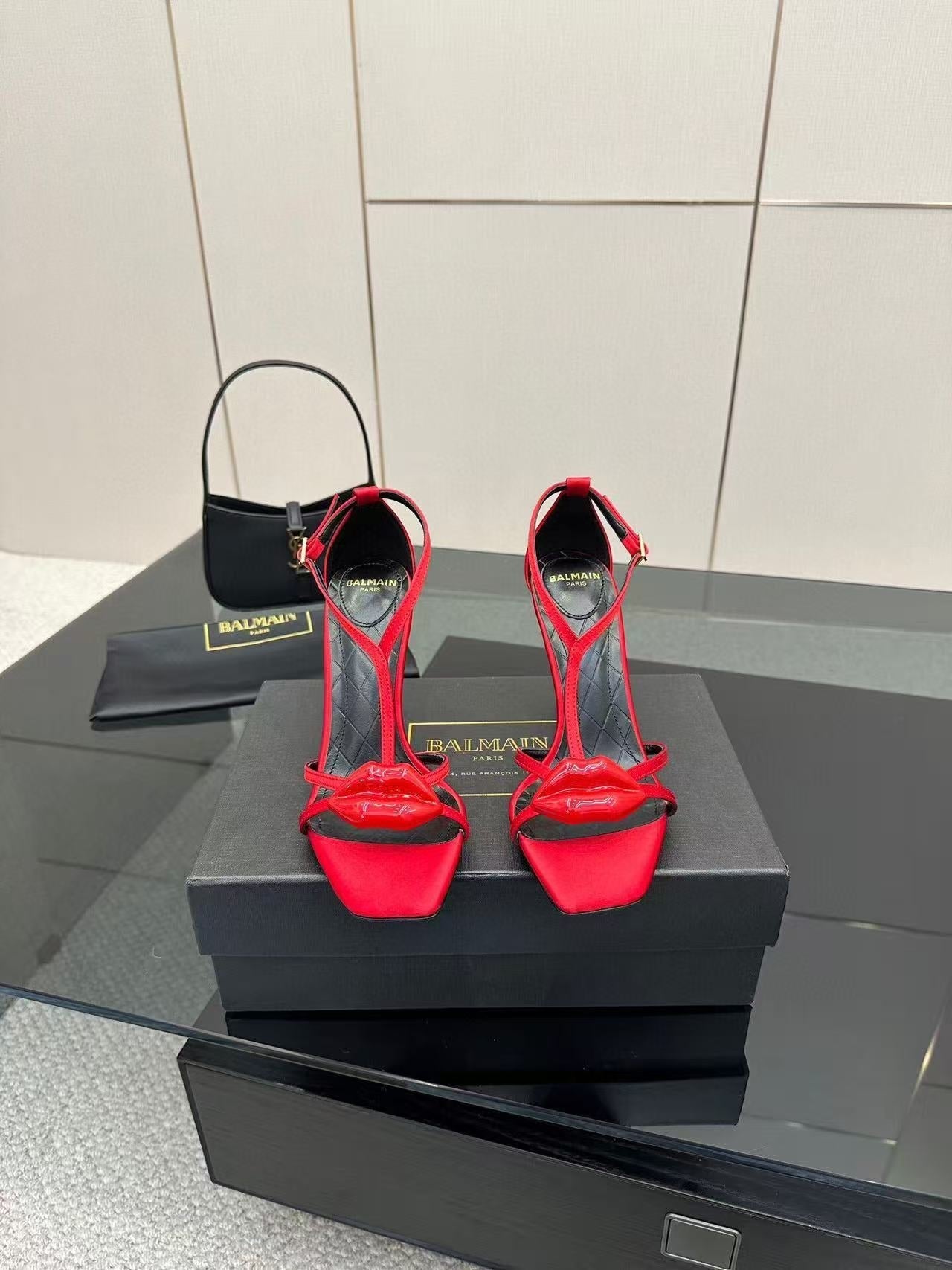 Balmain Lips 105MM Sandals Red Leather
