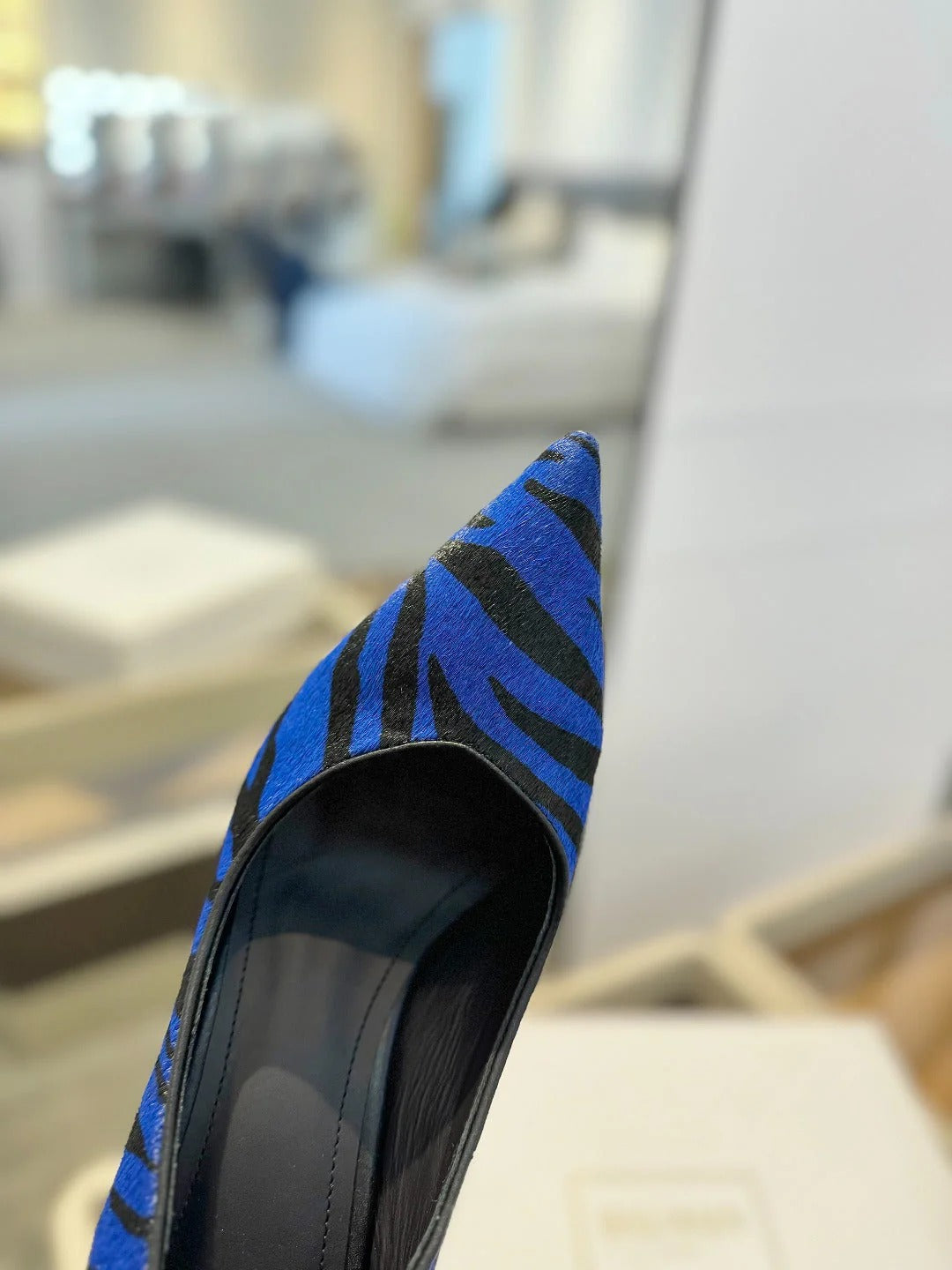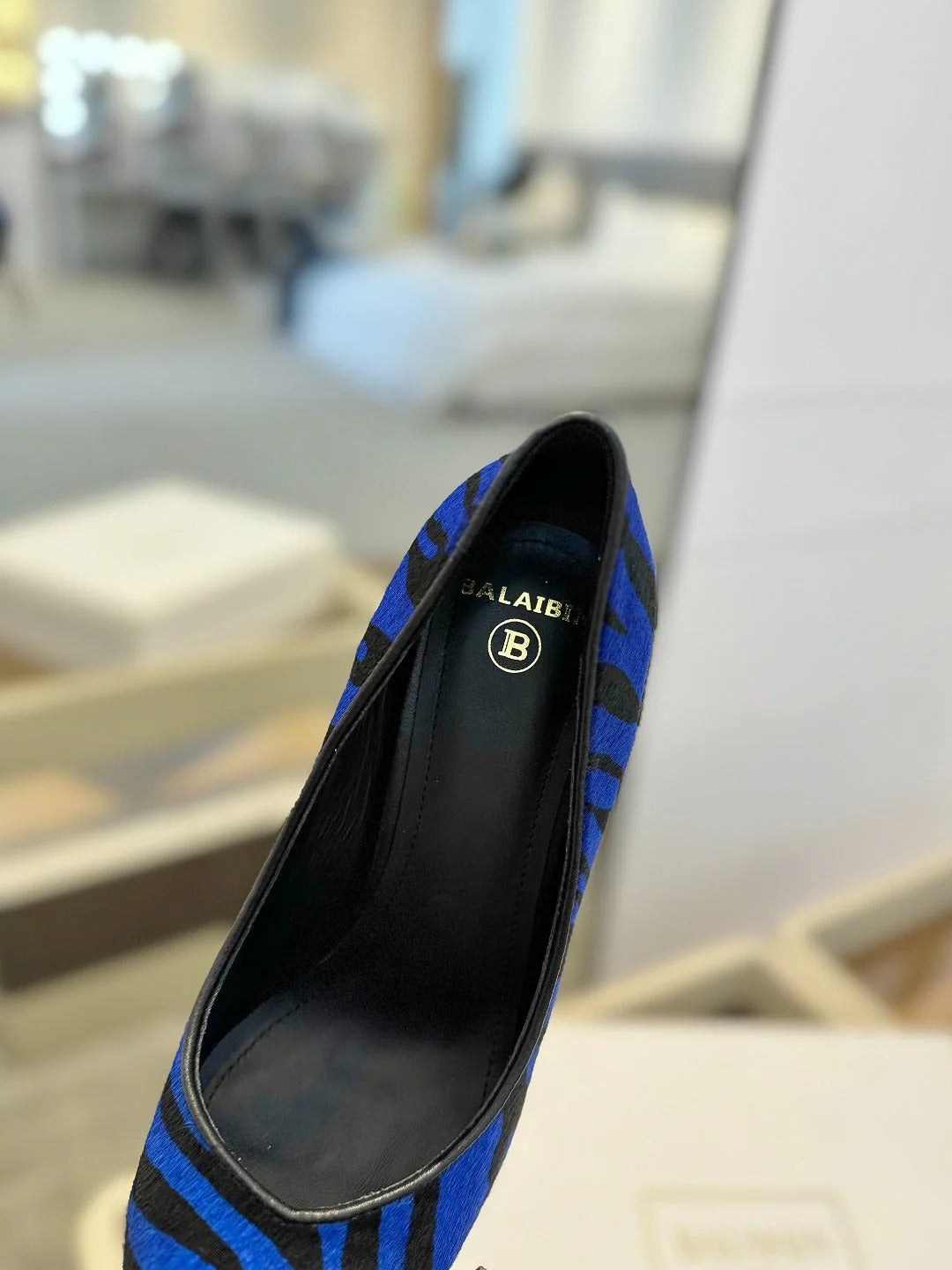 BALMAIN 25S HIGH HEELS 95MM IN BLUE AND BLACK ZEBRA PRINT CALFSKIN
