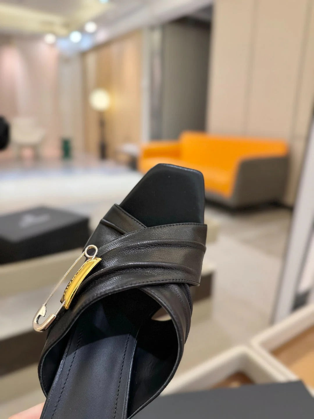 BALMAIN 25S BAKARI MULE WITH MONOCHROME POLKA DOT STRAP 95MM IN BLACK CALFSKIN