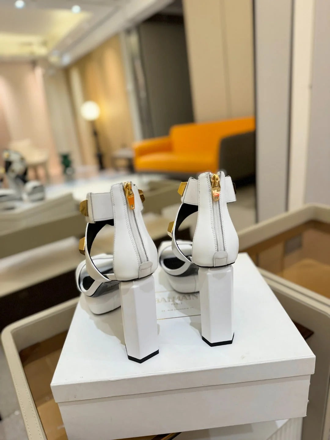 BALMAIN 25S WEDGE HEELS 105MM IN WHITE CALFSKIN GOLD HARDWARE