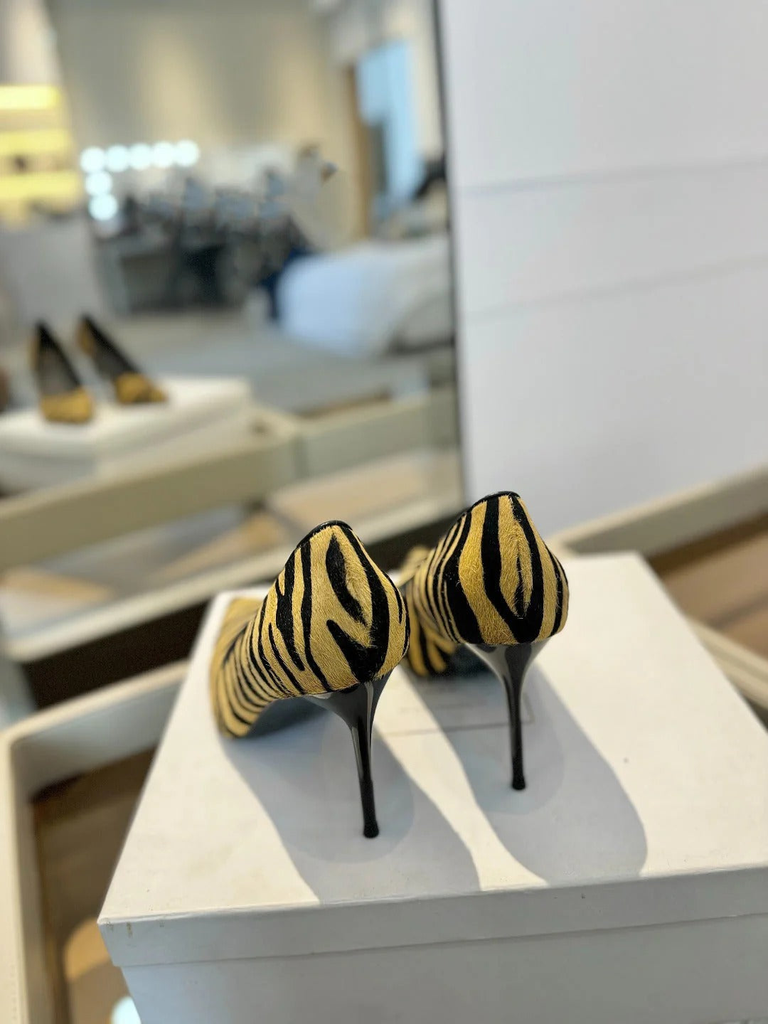 BALMAIN 25S HIGH HEELS 95MM IN YELLOW AND BLACK ZEBRA PRINT CALFSKIN