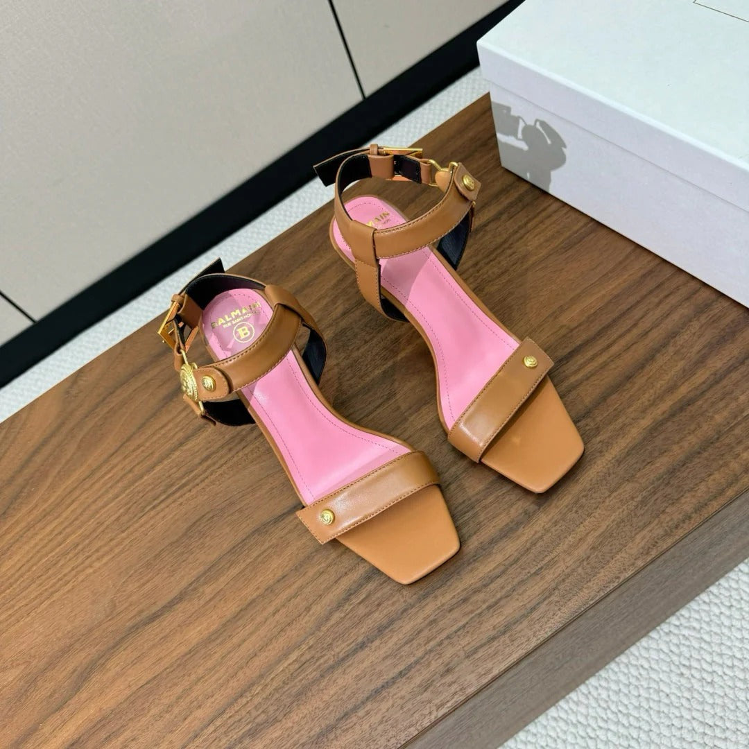 BALMAIN 25S HEELED EVA SANDALS 95MM IN BROWN AND PINK CALFSKIN