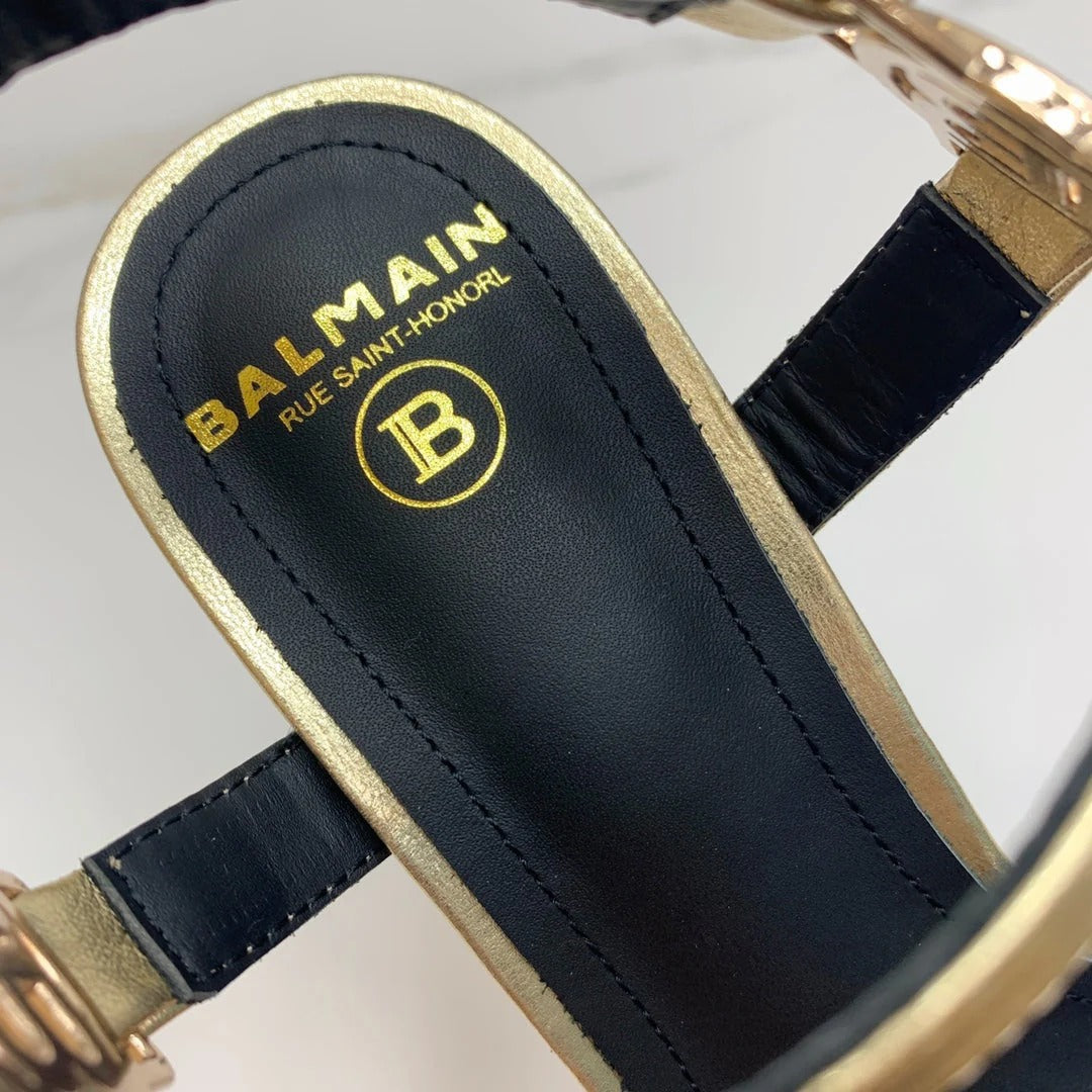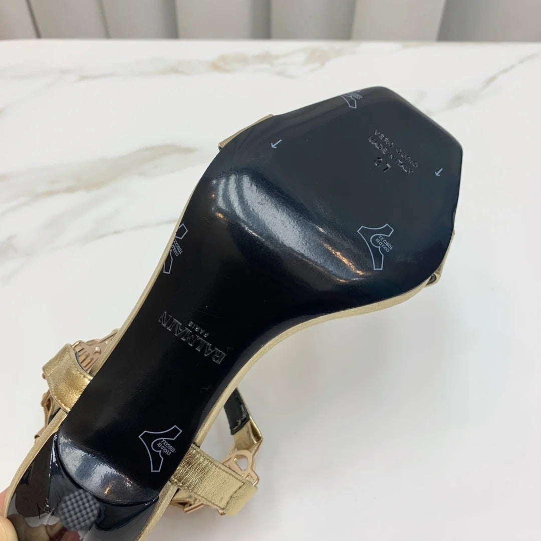 BALMAIN 25S HIGH HEELS WITH B METAL DETAIL 95MM IN GOLD CALFSKIN