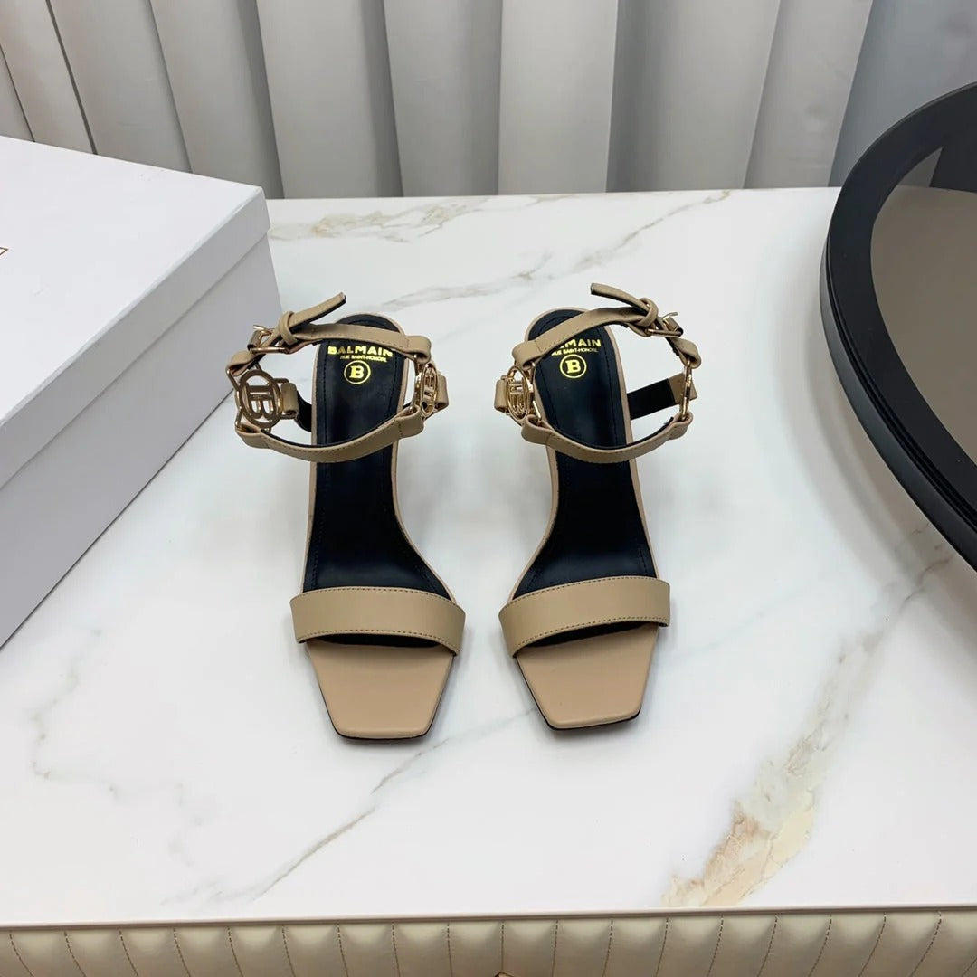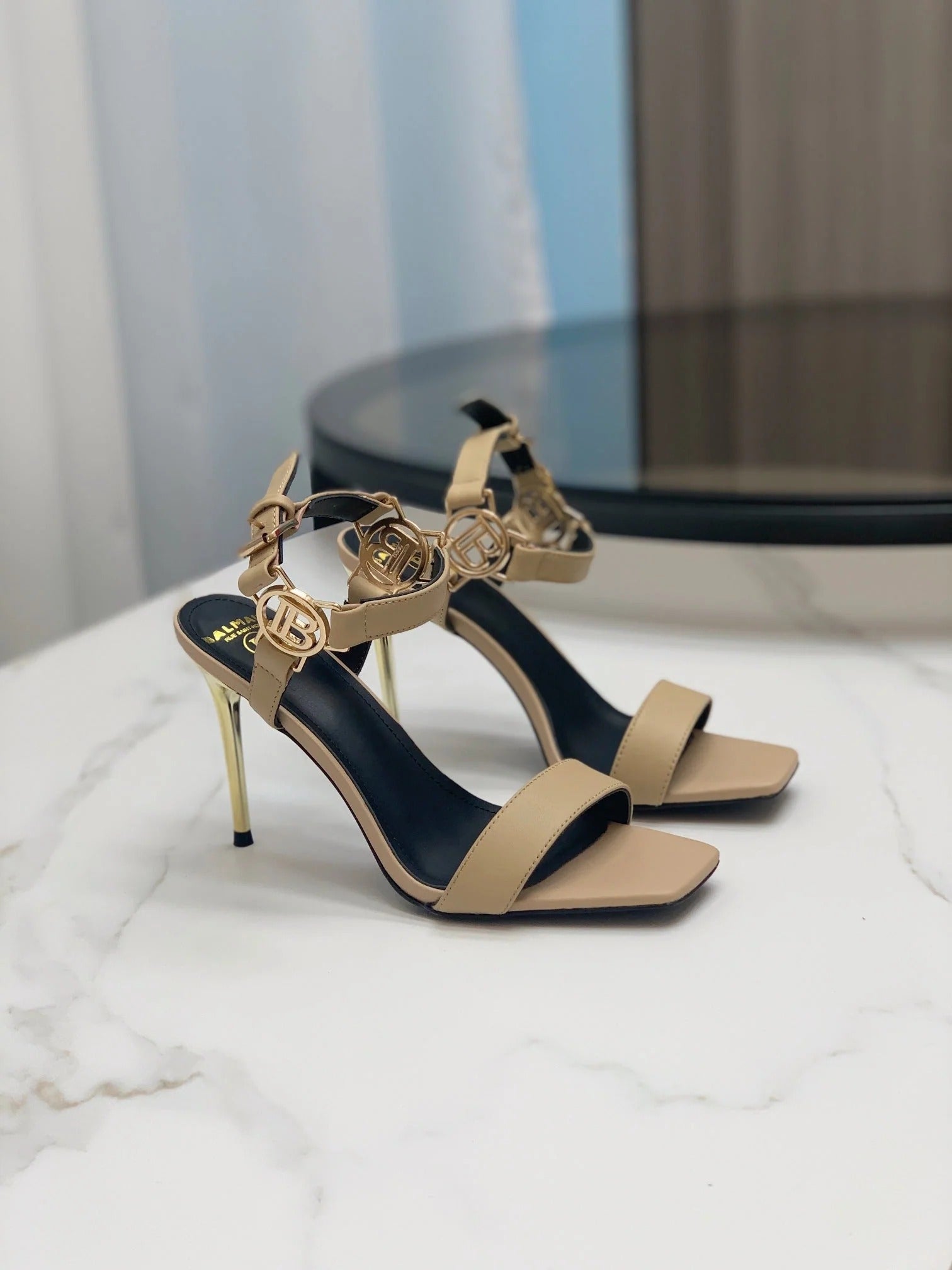 BALMAIN 25S HIGH HEELS WITH B METAL DETAIL 95MM IN LIGHT BROWN CALFSKIN