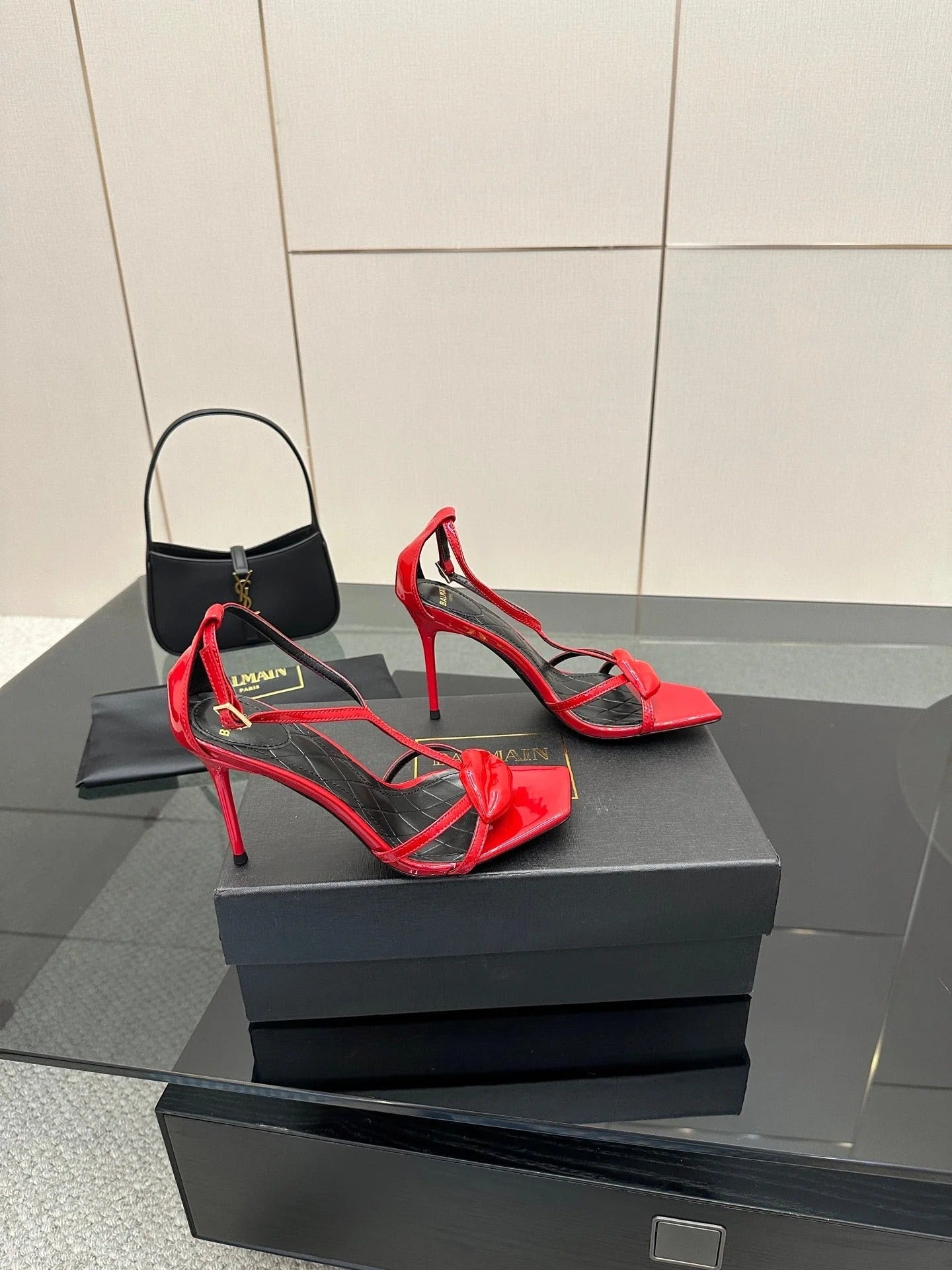 BALMAIN 25S LIPS SANDALS 10 IN CRIMSON RED CALFSKIN