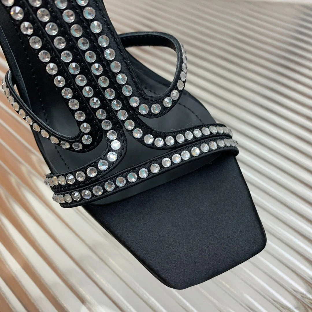BALMAIN 25S MONETA SANDAL 95MM IN BLACK CALFSKIN WITH CRYSTAL
