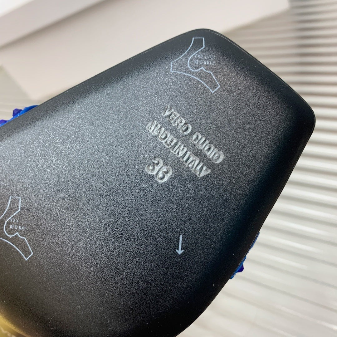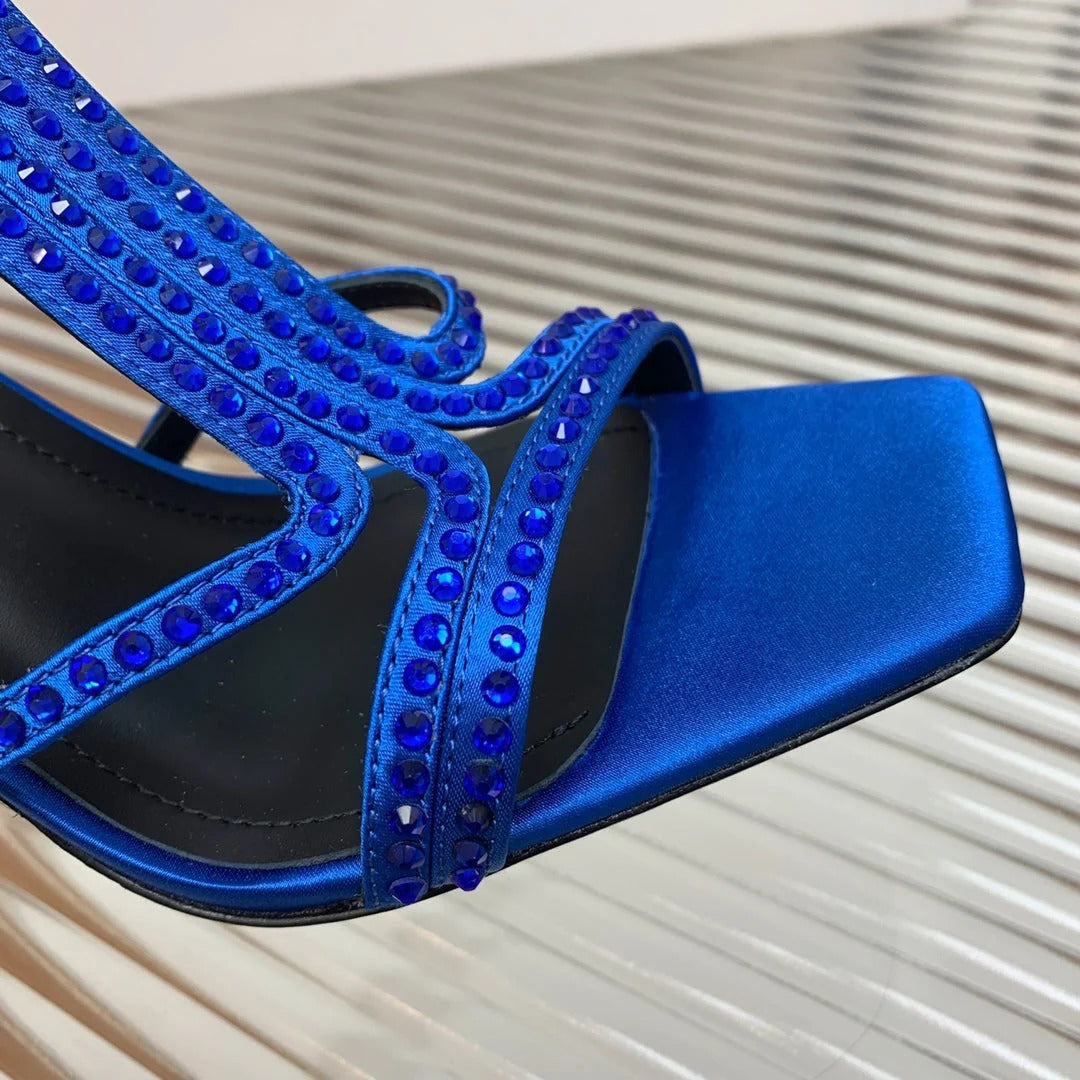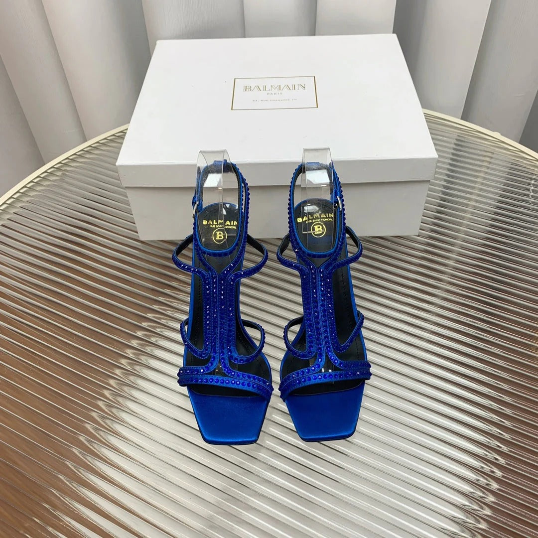BALMAIN 25S MONETA SANDAL 95MM IN DARK BLUE CALFSKIN WITH CRYSTAL