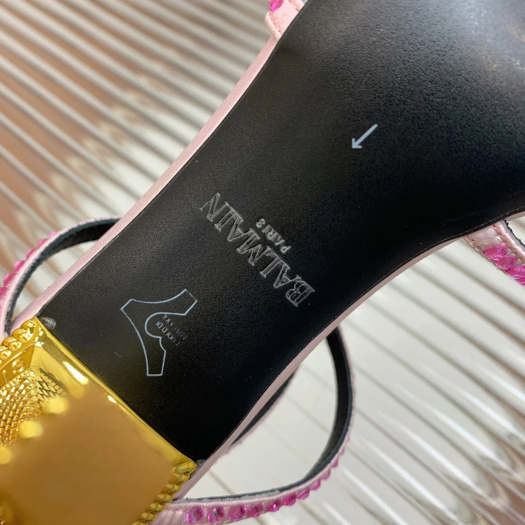 BALMAIN 25S MONETA SANDAL 95MM IN LAVENDER PINK CALFSKIN WITH CRYSTAL
