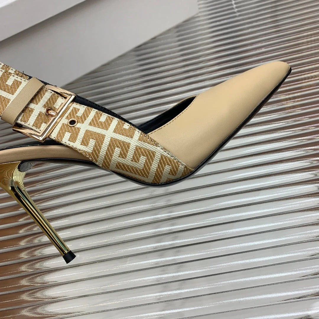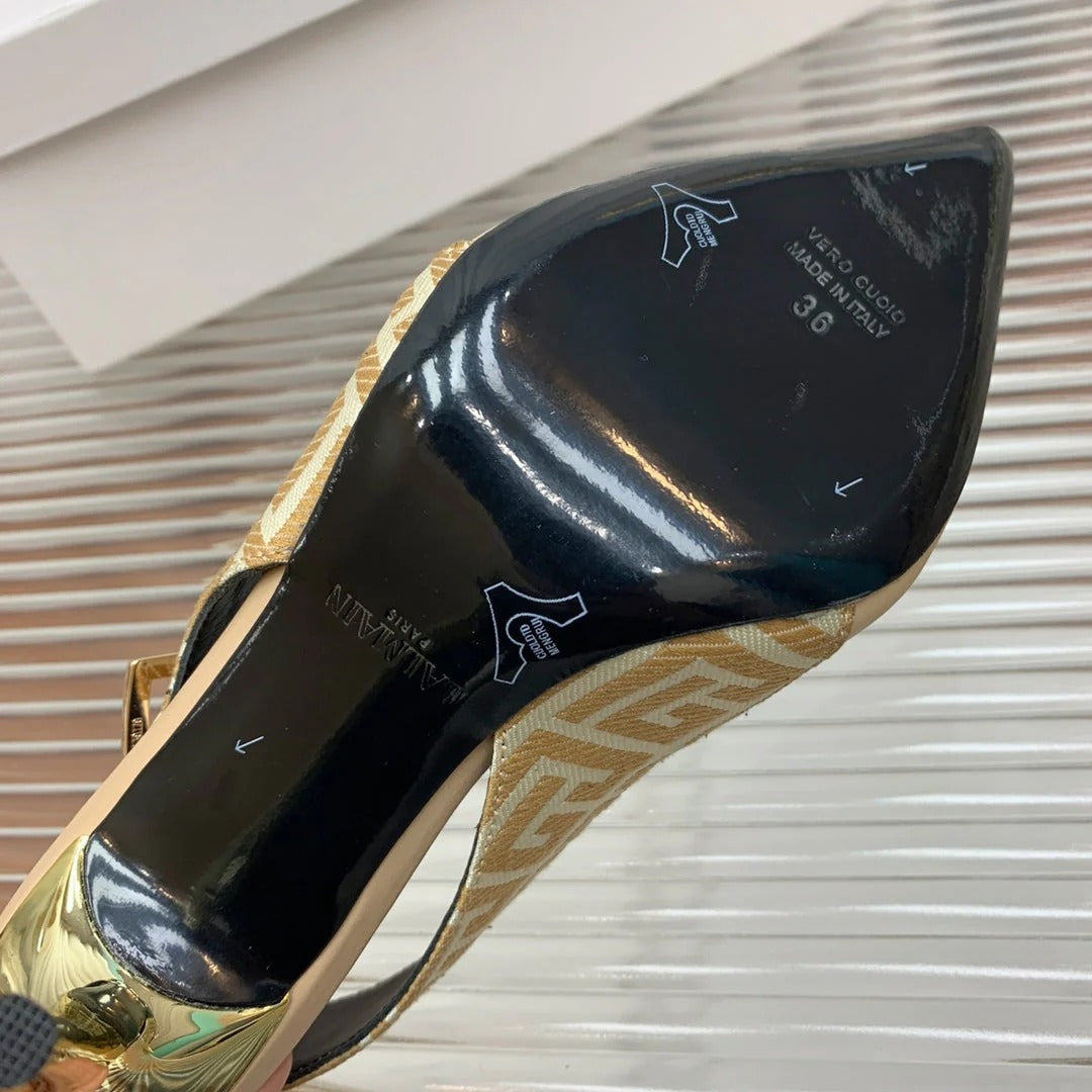 BALMAIN 25S SLINGBACK SHOES 95MM IN LIGHT BROWN CALFSKIN