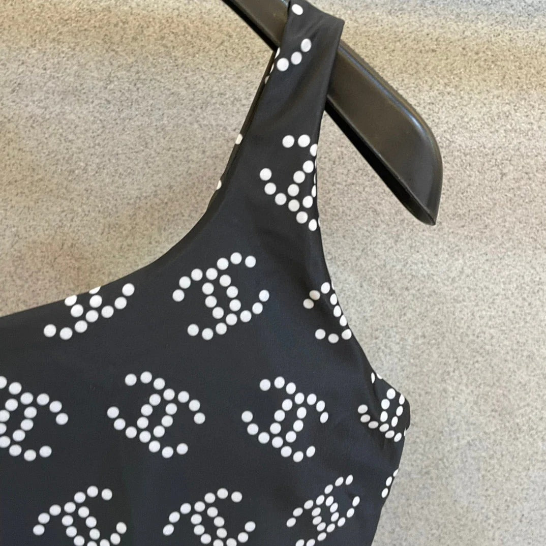 CC BIKINI SWIMSUIT SET IN BLACK AND WHITE LOGO PRINTED 615195