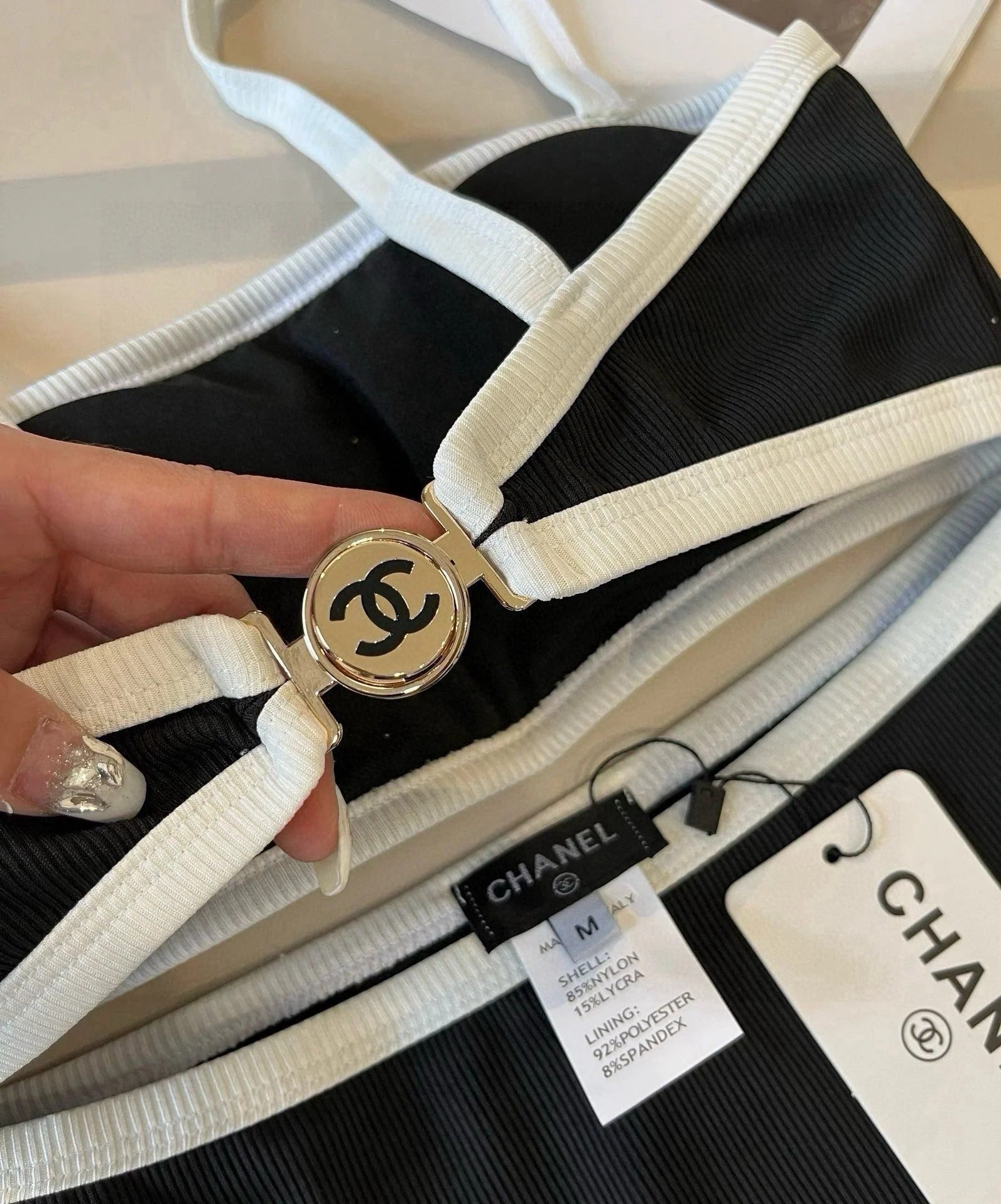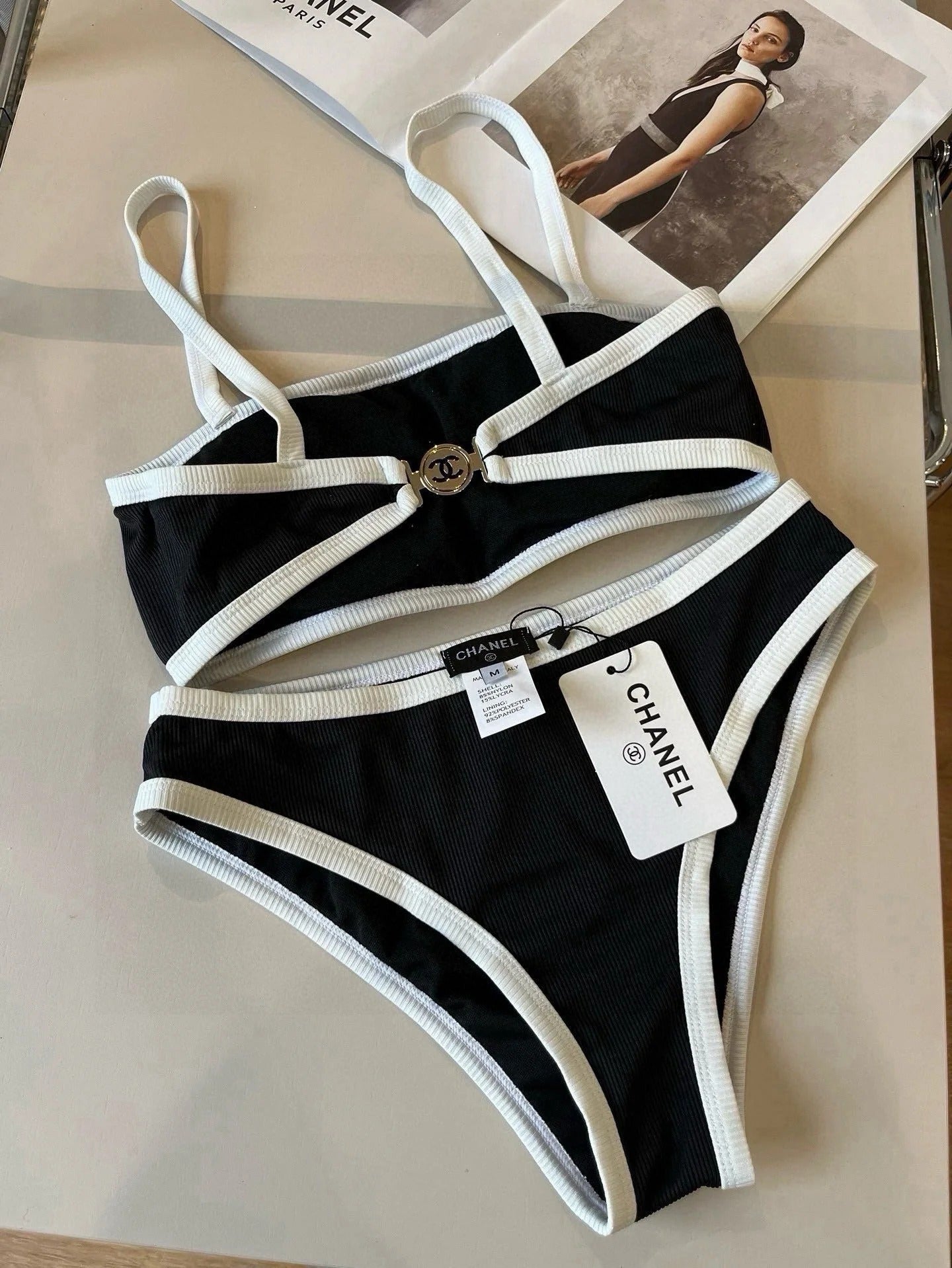 CC BIKINI SWIMSUIT SET IN BLACK AND WHITE TRIM 633212