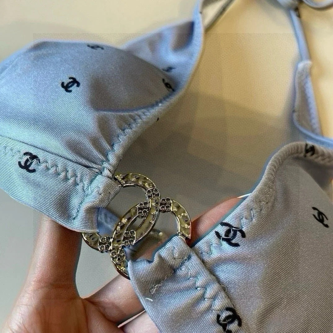 CC BIKINI SWIMSUIT SET IN GREY PRINTED LOGO 629237