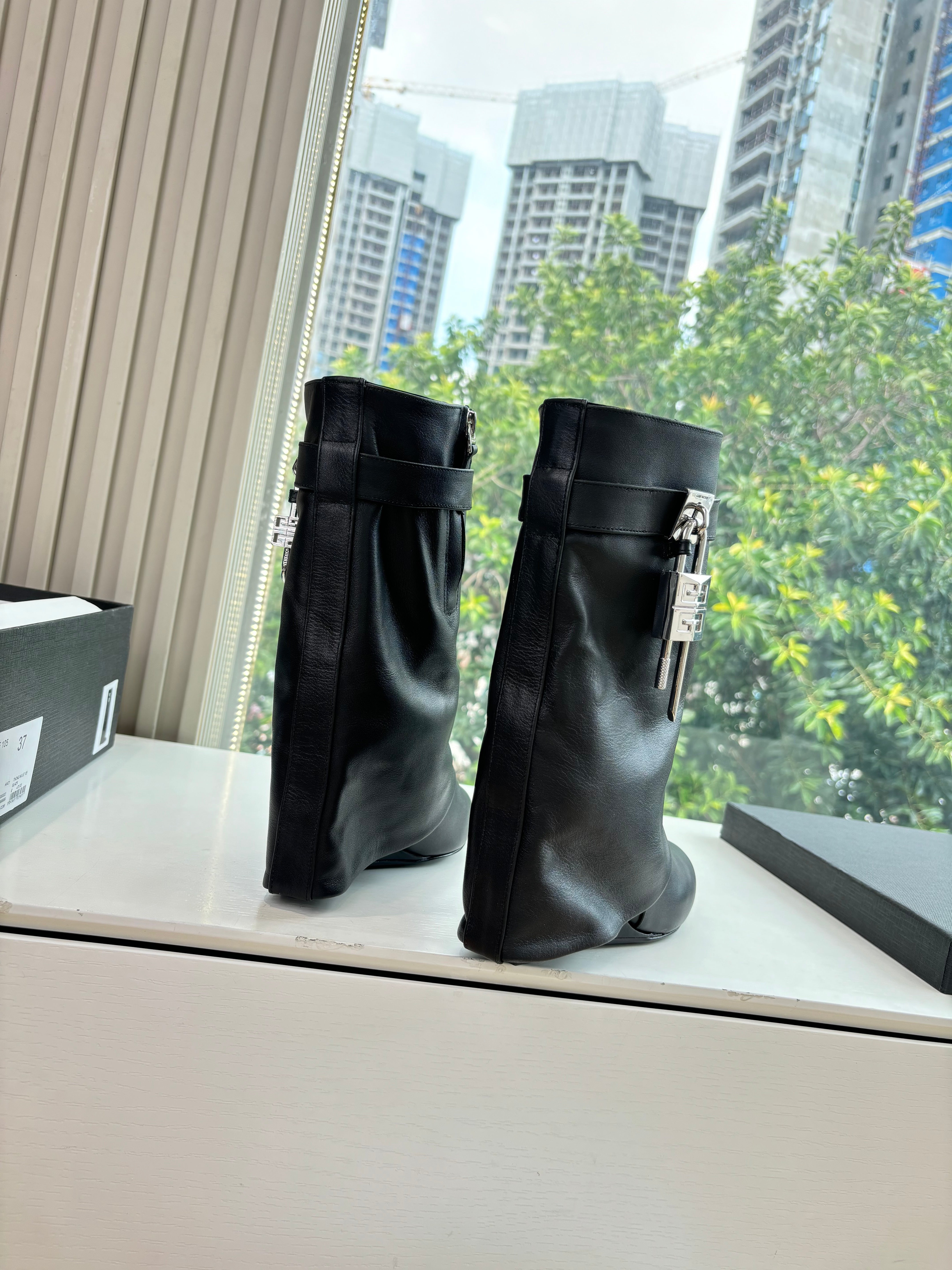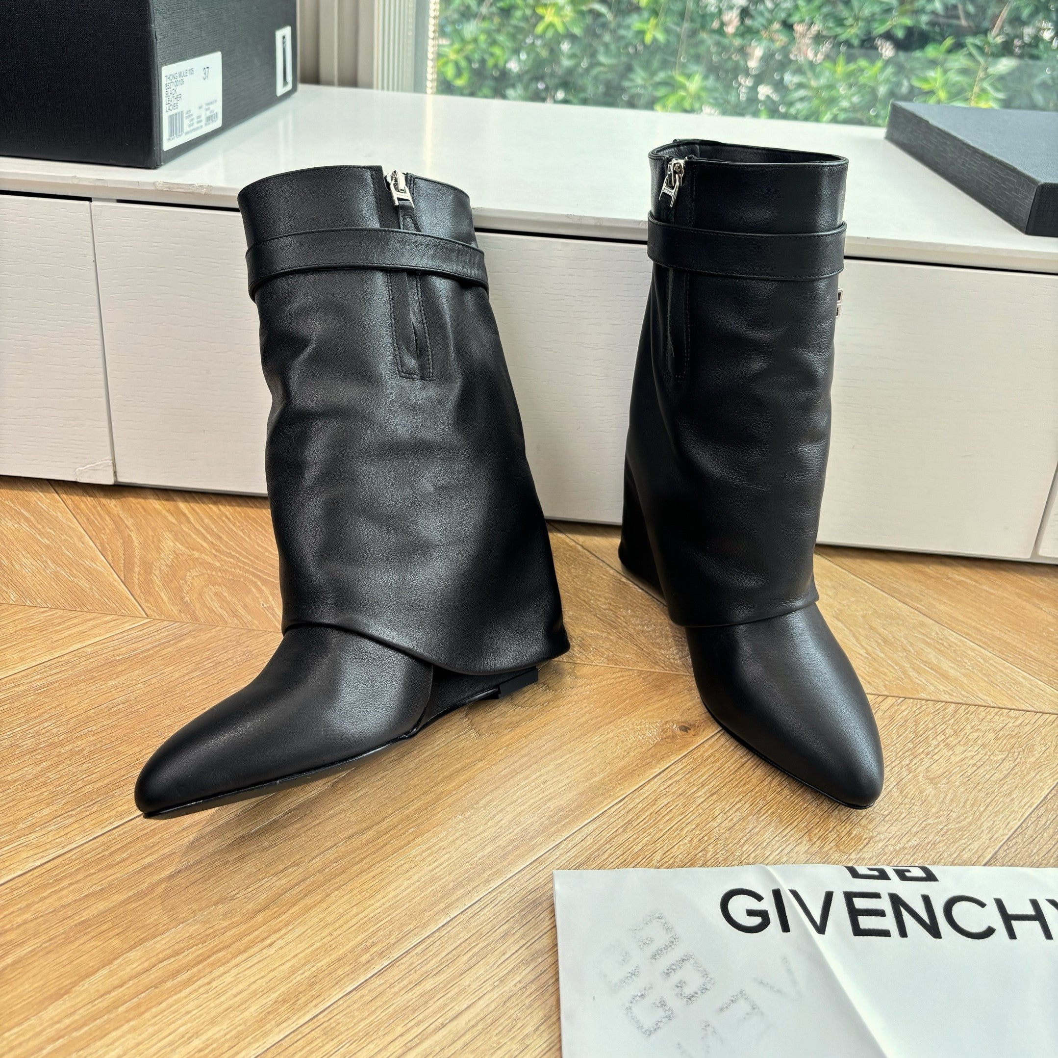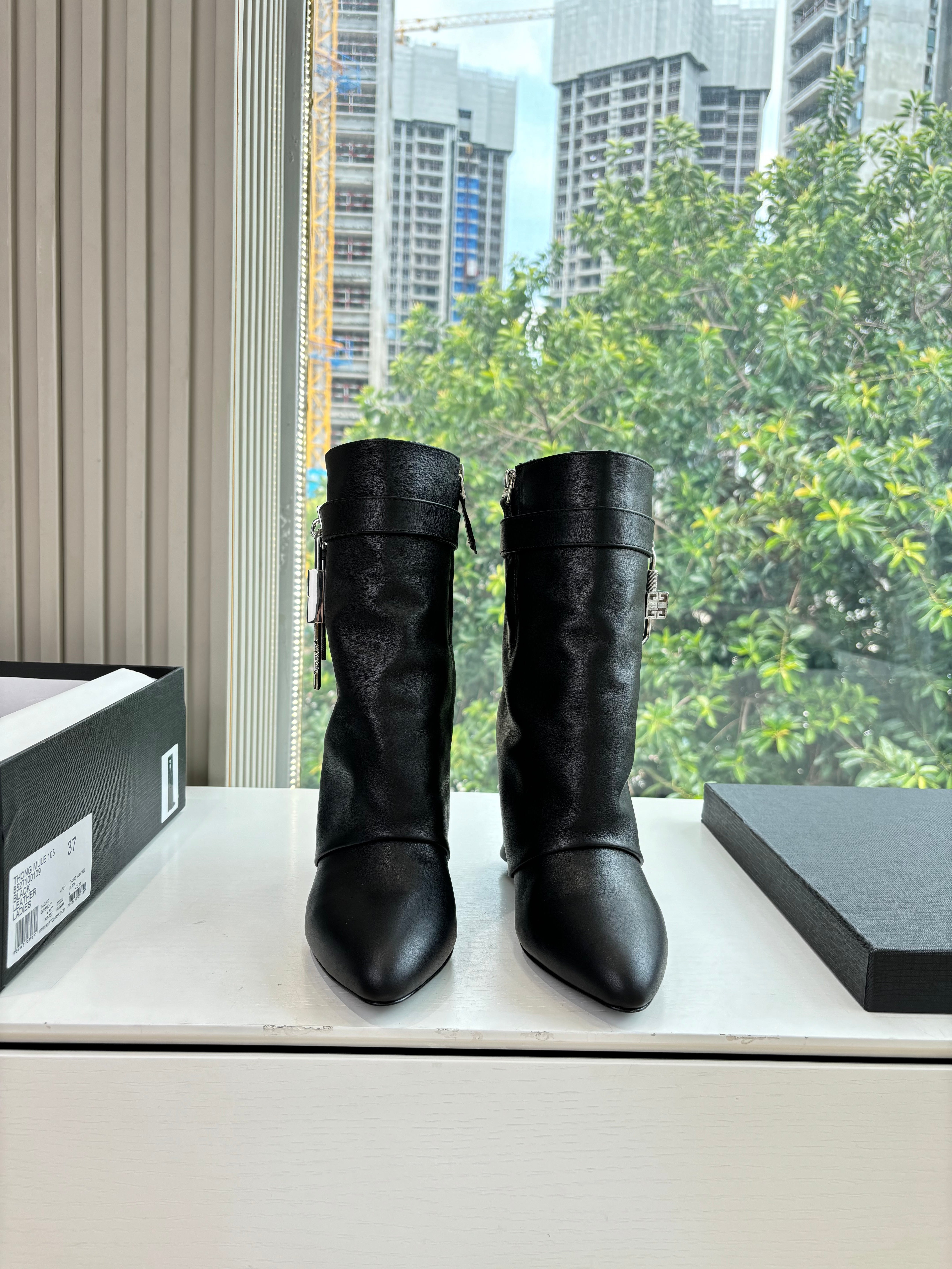 Givenchy FW25 Shark-Lock Ankel Boots Black Cowhide Sliver HW 507185