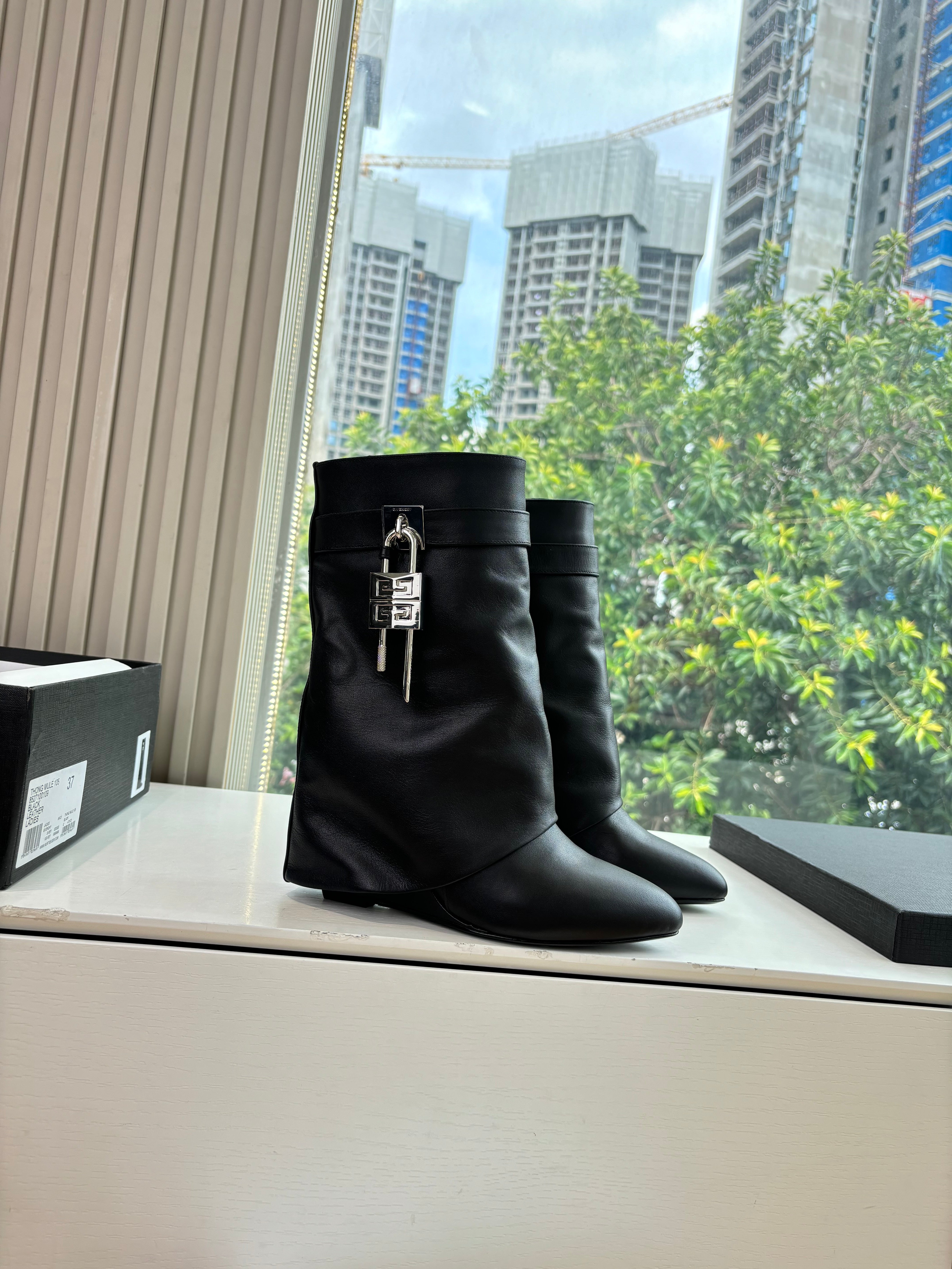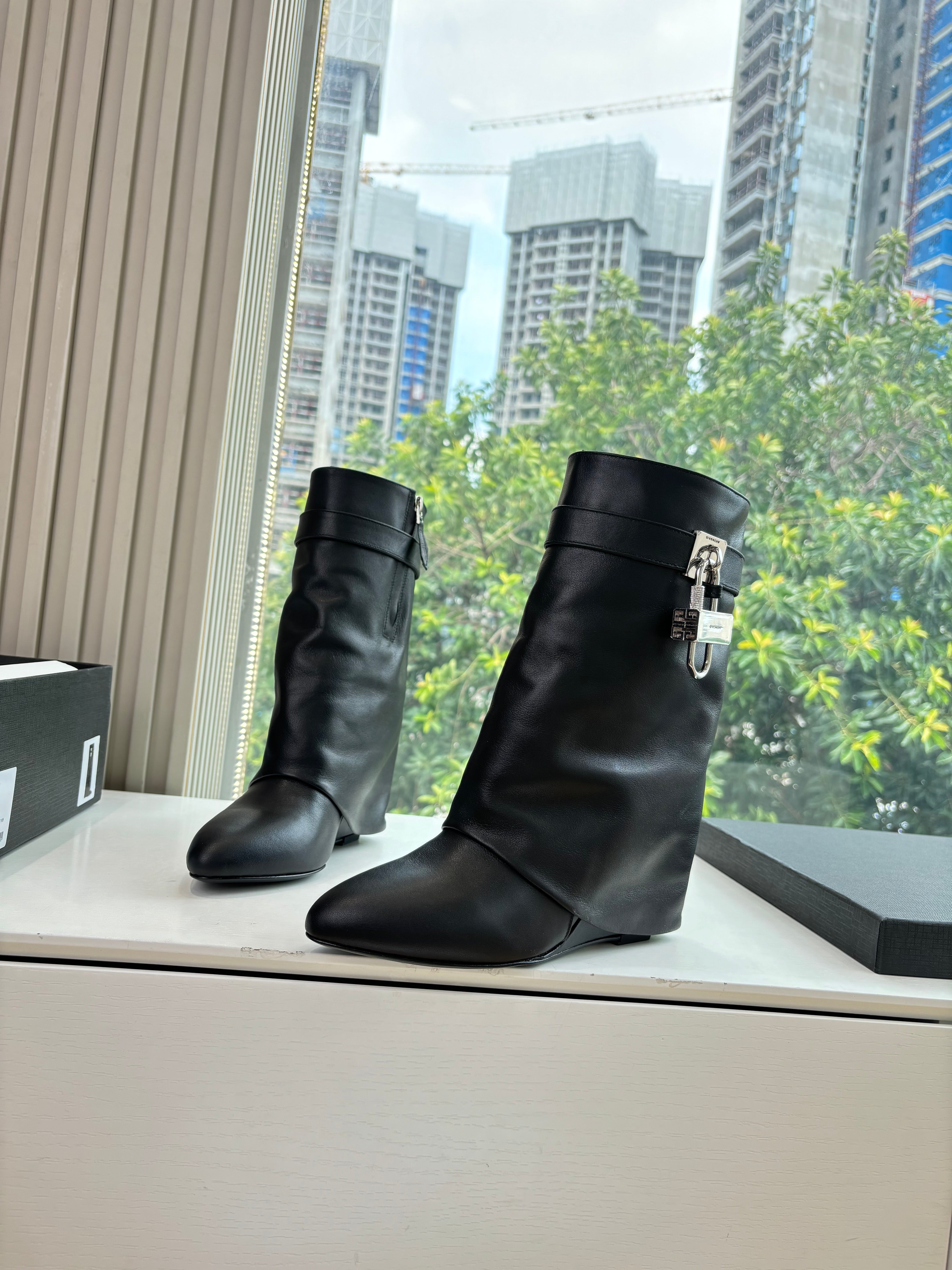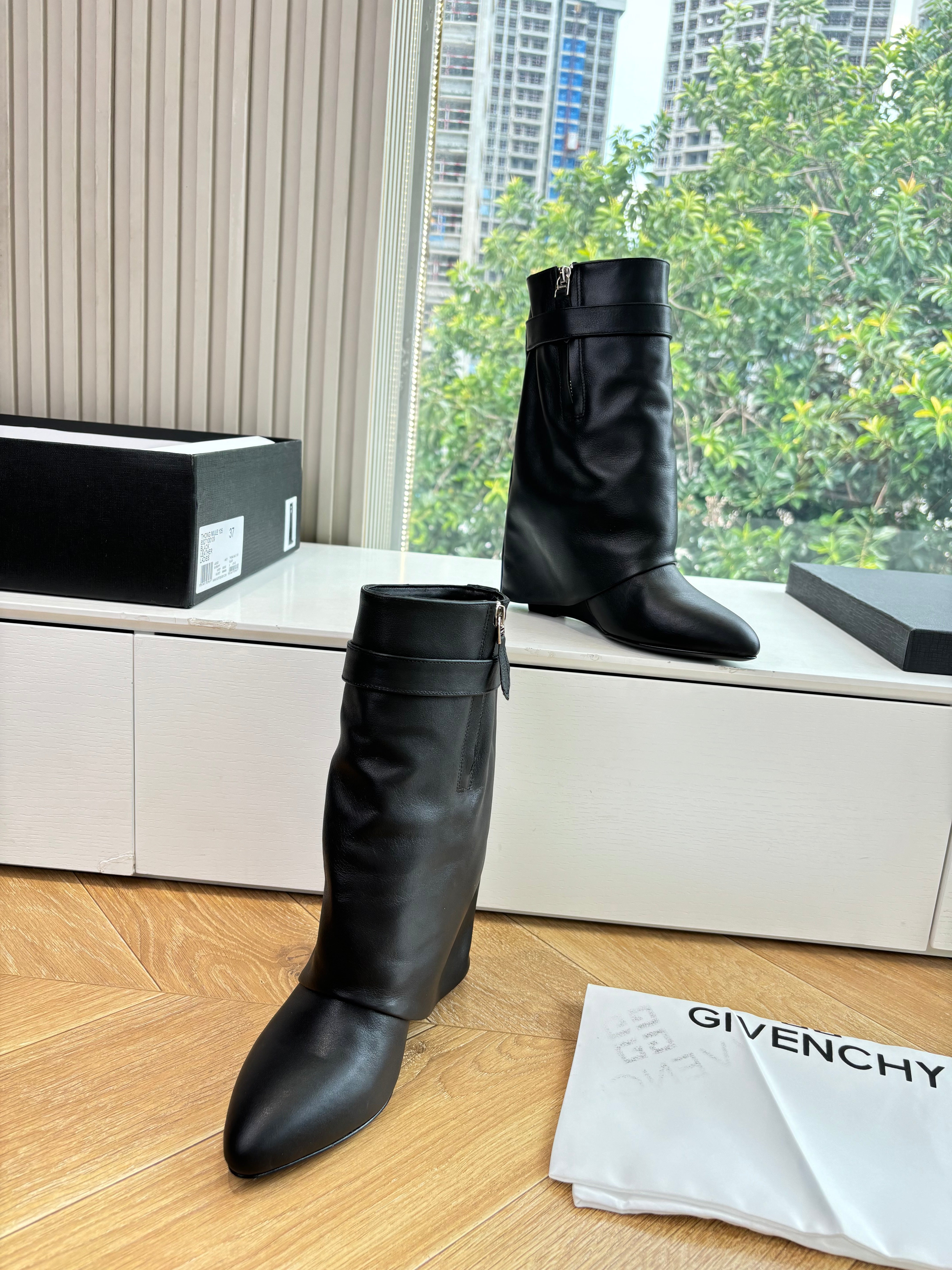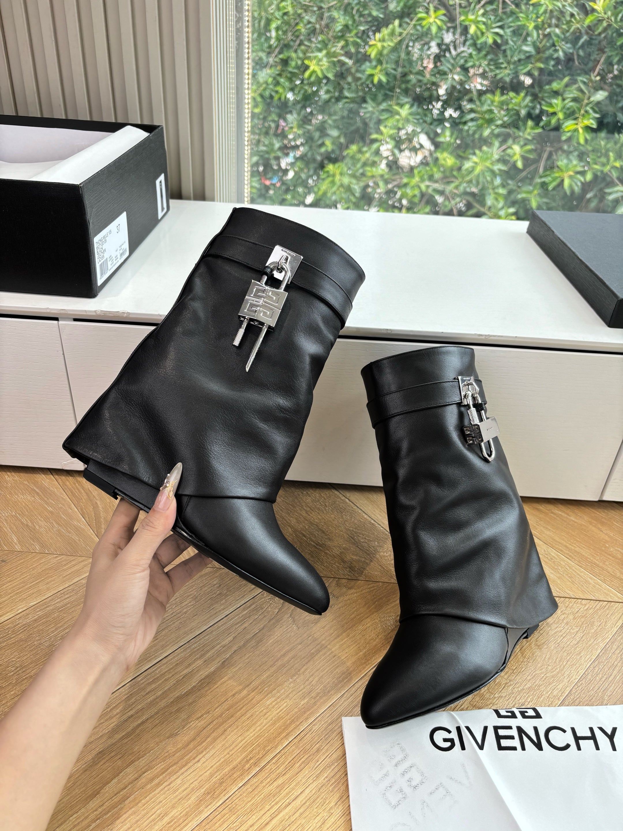 Givenchy FW25 Shark-Lock Ankel Boots Black Cowhide Sliver HW 507185