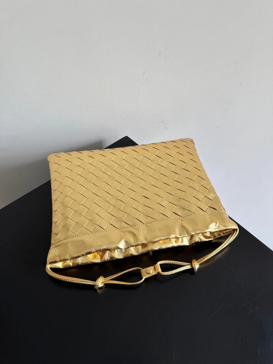 Bottega Veneta 2026 Dust Bag Gold Laminated Leather