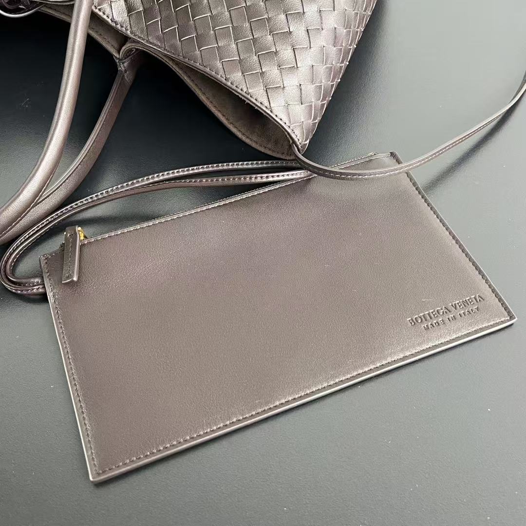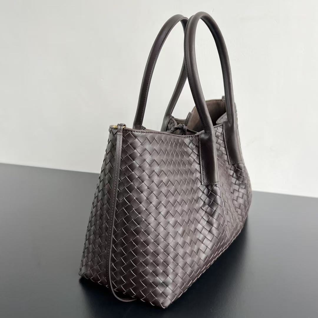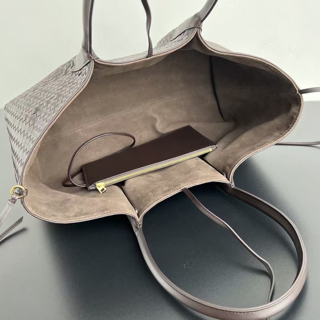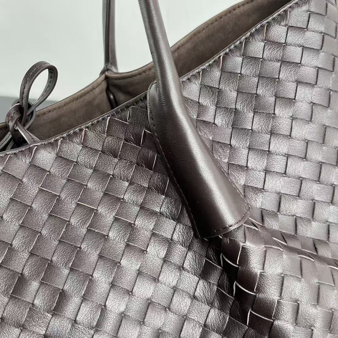 BV Reversible Tote Bag 43cm Intreccio Chocolate Brown Calfskin Suede