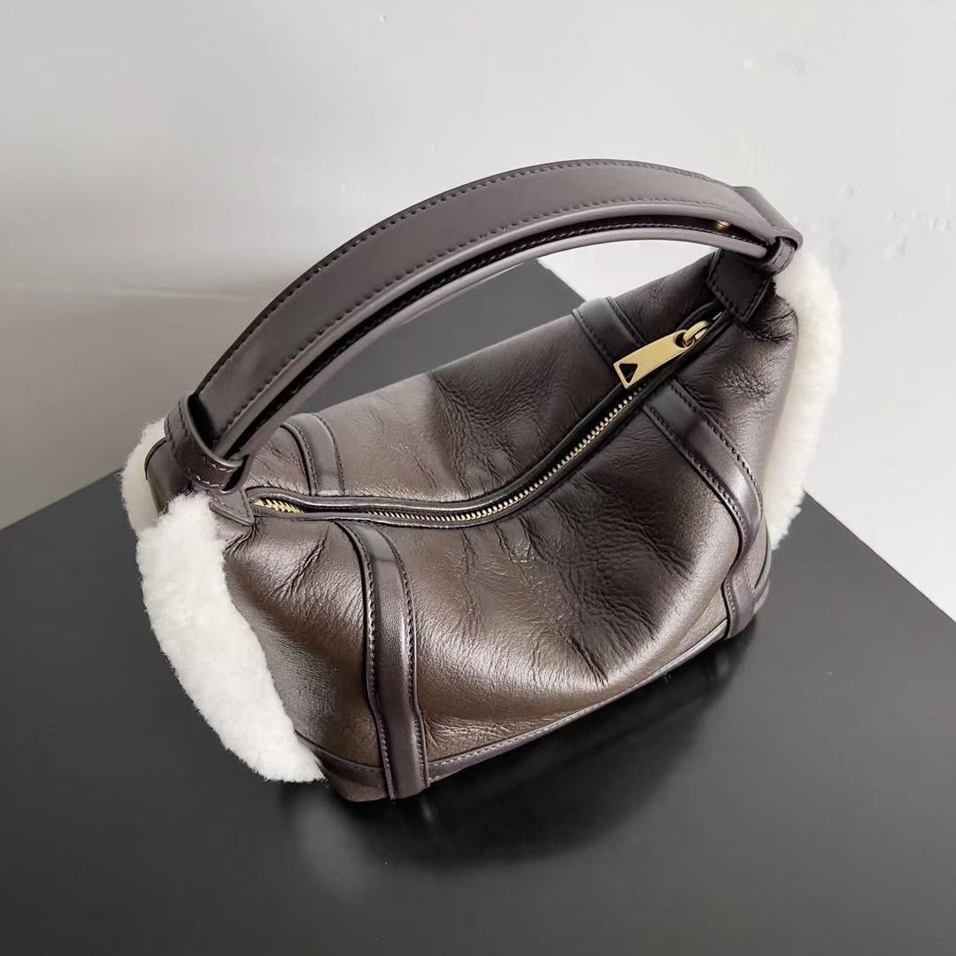 BV Wallace Mini Bag Brown White Lamb Fur Leather