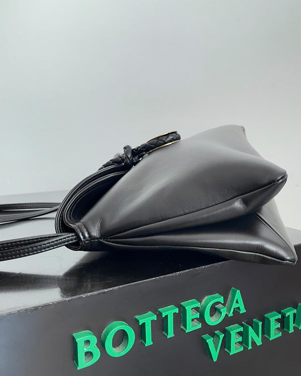 BV Liberta Crossbody Bag Buckle 30cm Black Cowhide