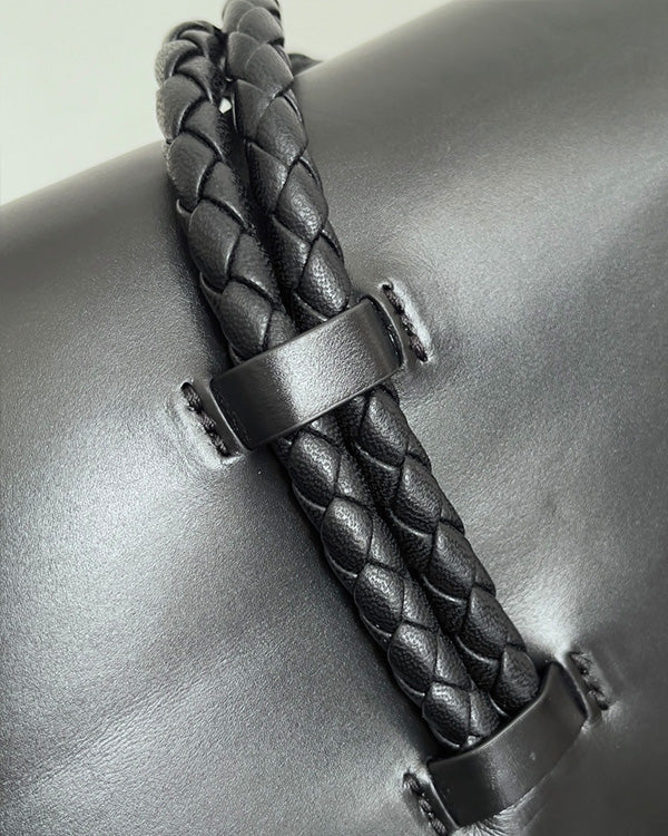 BV 25 Backpack Black Intrecciato Grained Leather