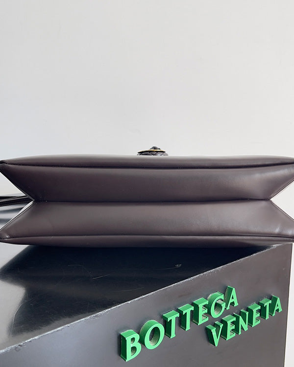 BV Liberta Crossbody Bag Buckle 30cm Chocolate Brown Cowhide