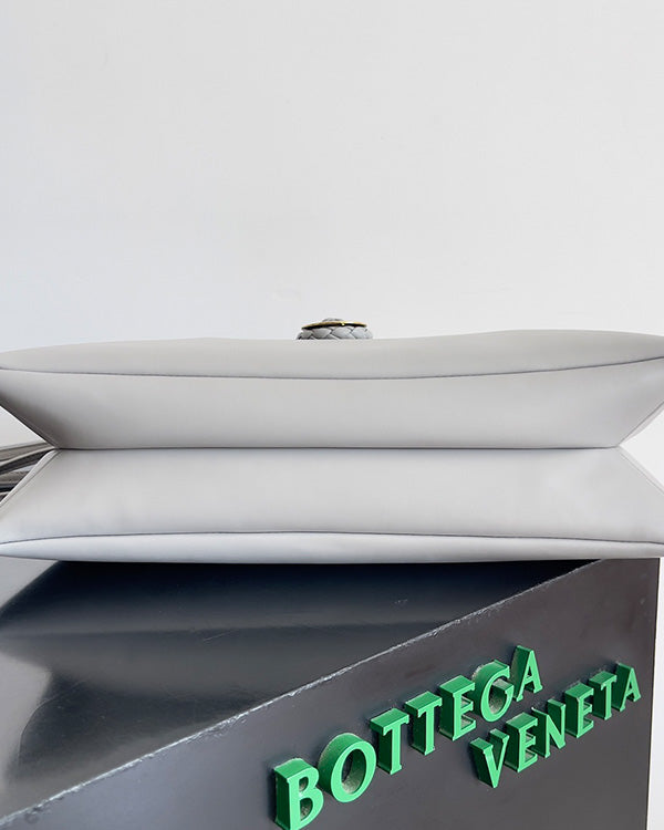 BV Liberta Crossbody Bag Buckle 30cm Silver Gray Cowhide