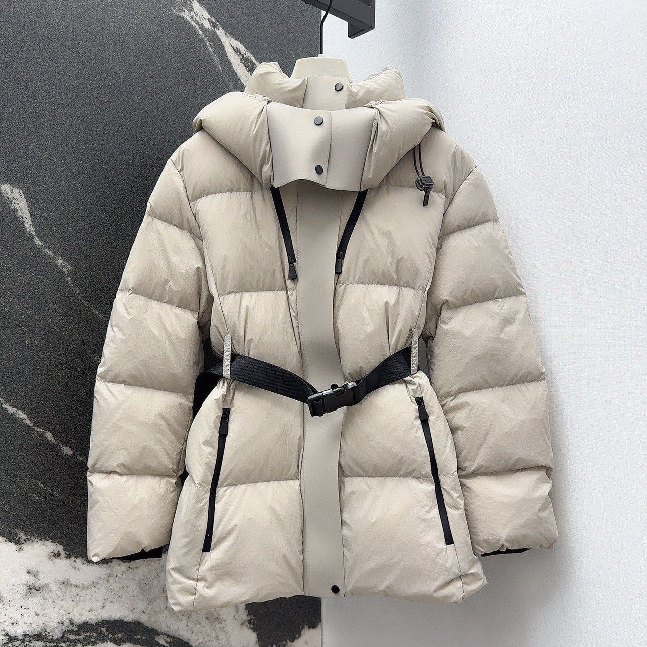 Burberry 25 Hooded Short Down Jacket with Adjustable Waist White Polyester