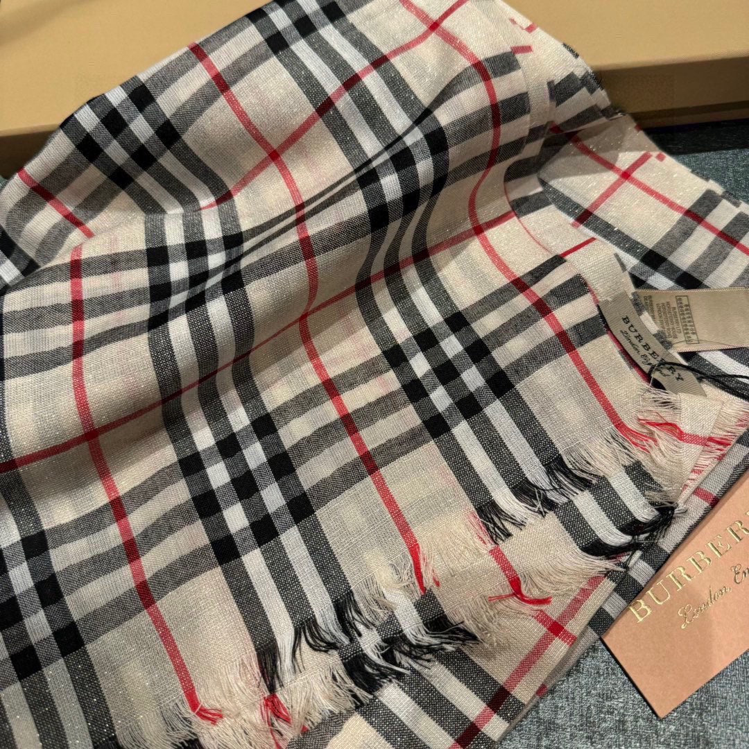CHECK WOOL 182 CM SCARF PASTEL GRAY 405047