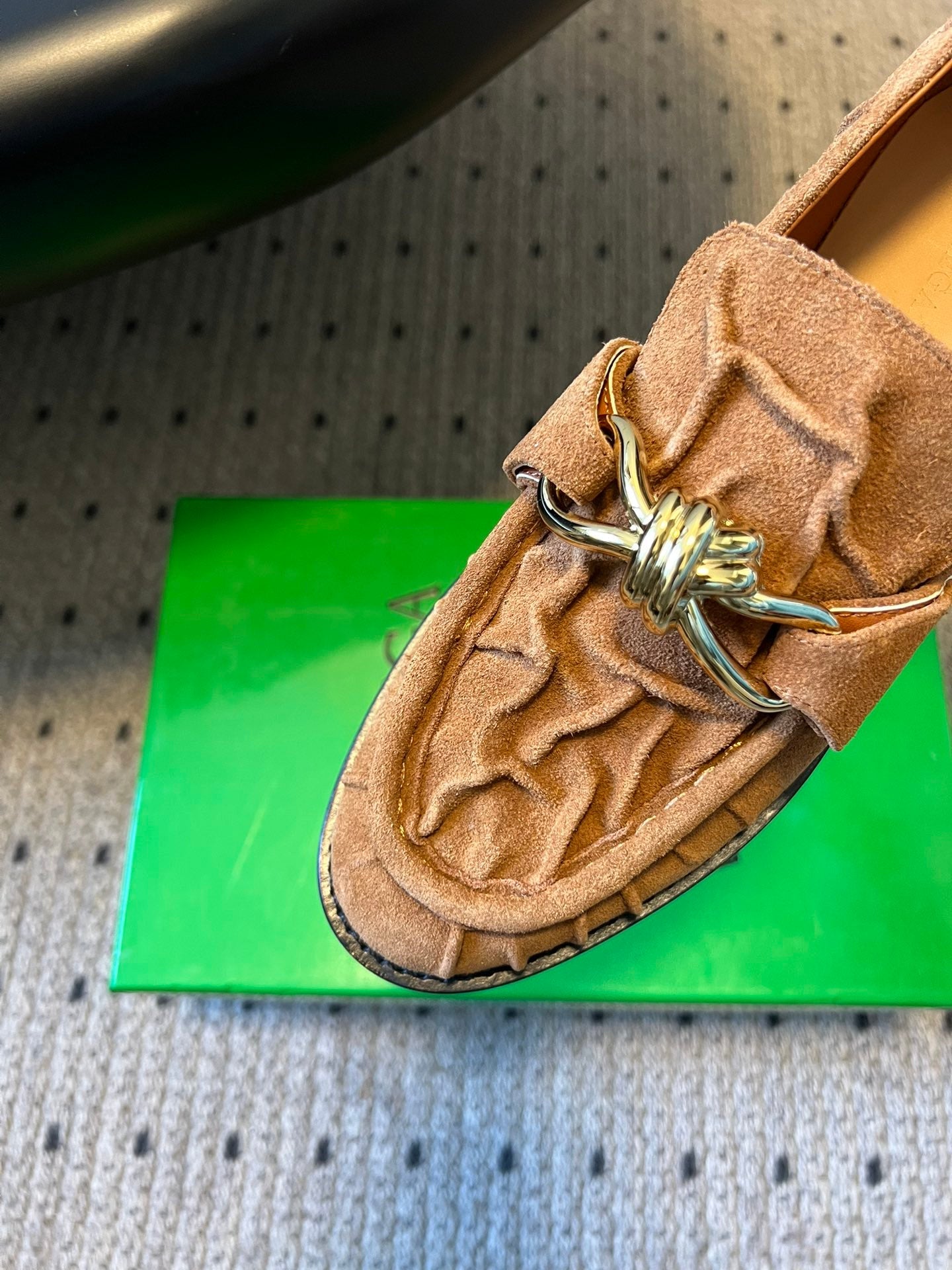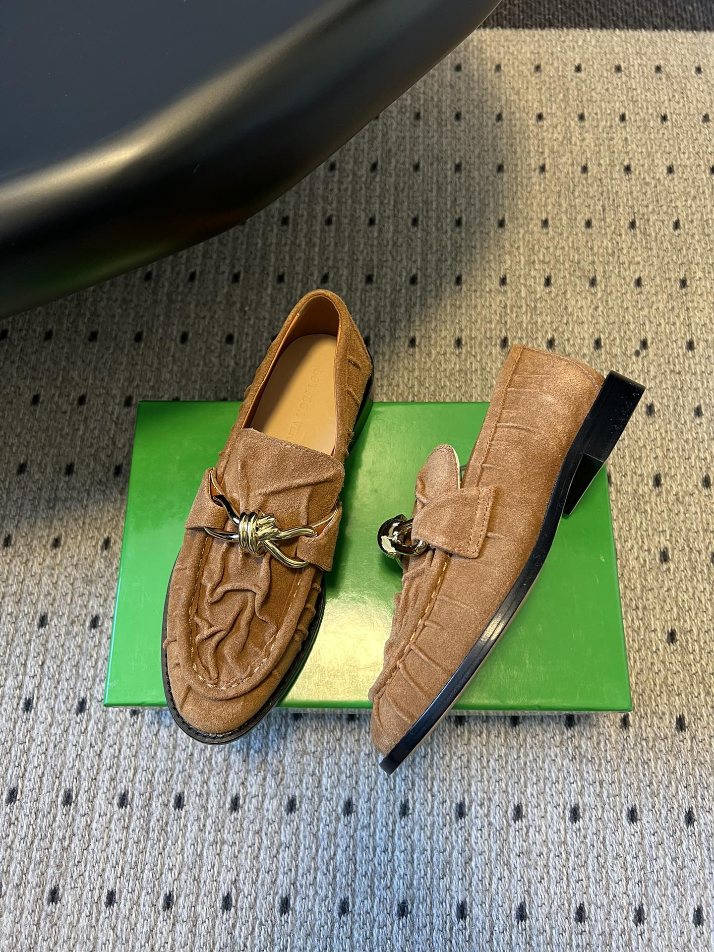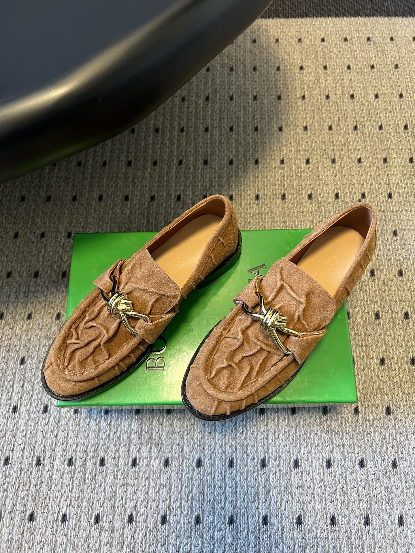BV Astaire Loafers Knotted Brown Crinkled-Suede Leather 616653