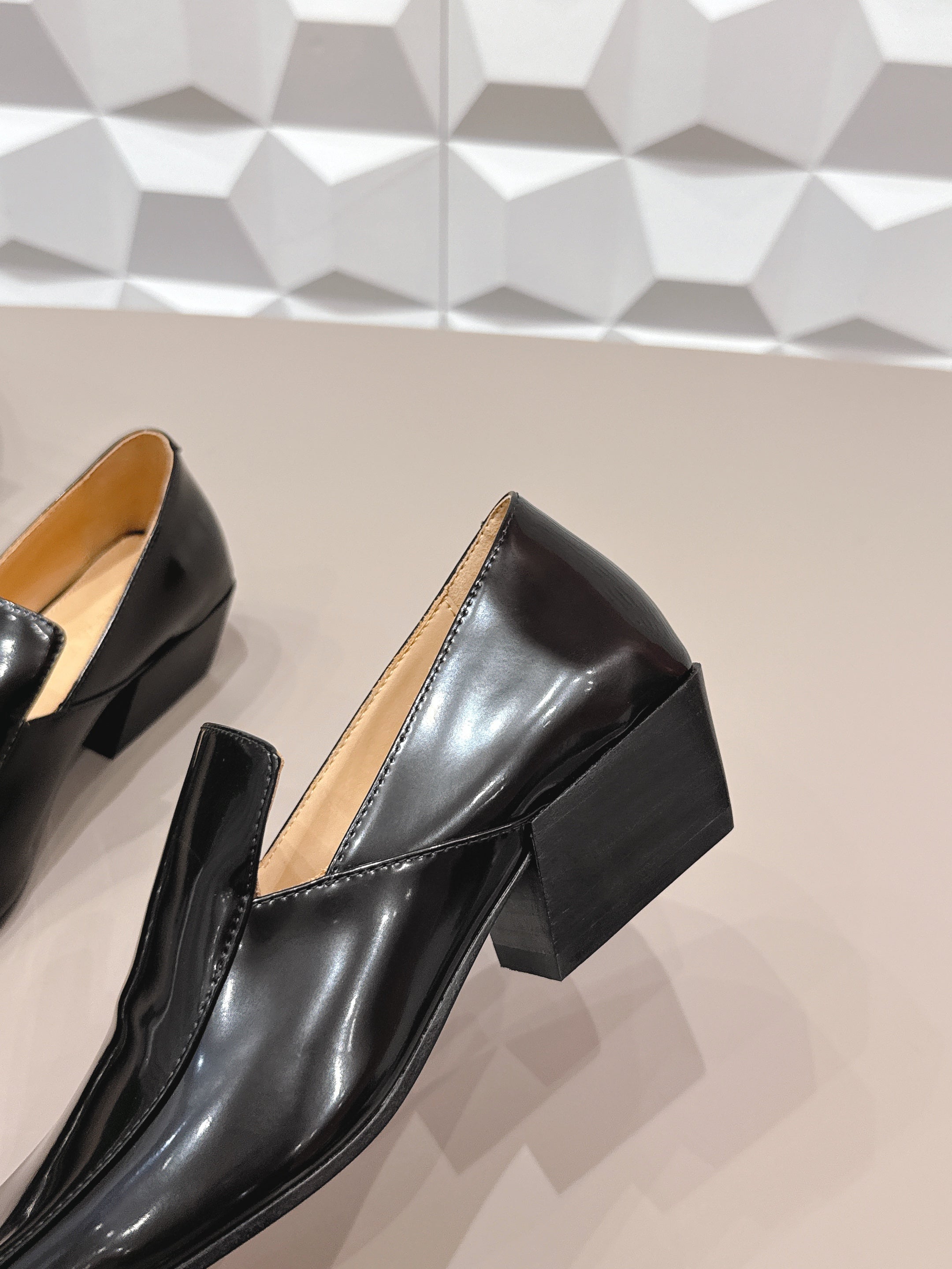 patch mule flat black lambskin