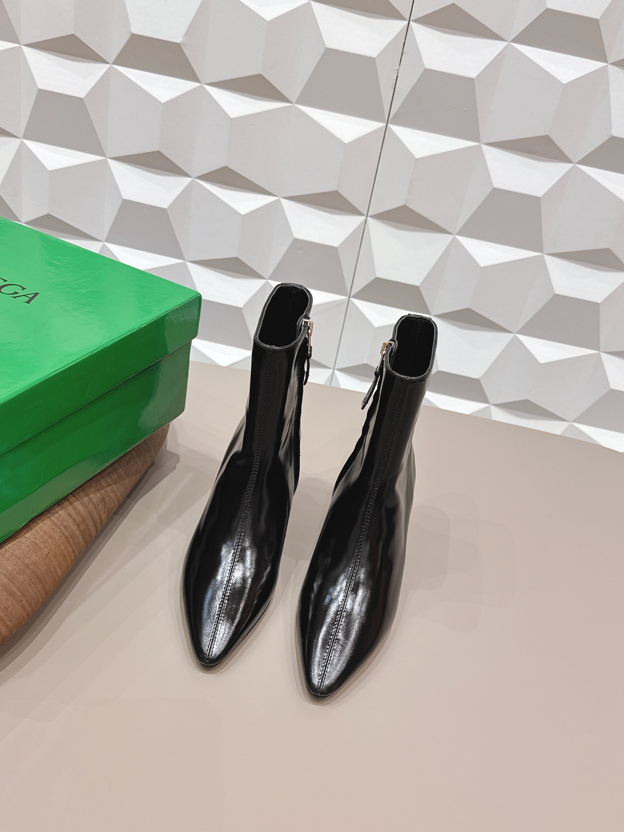 BV Mini Snap Ankle Boot Black Calfskin Shearing 538961