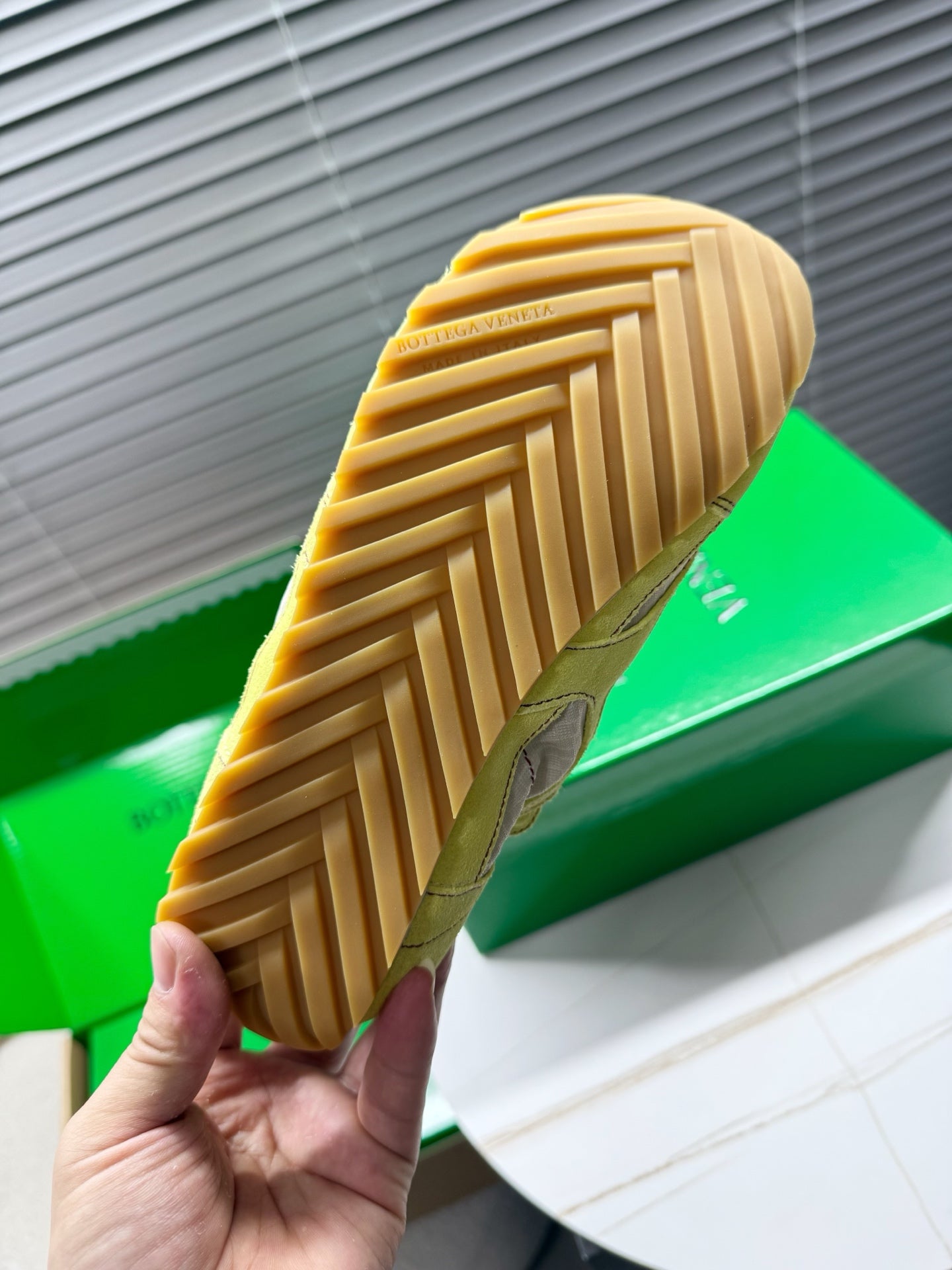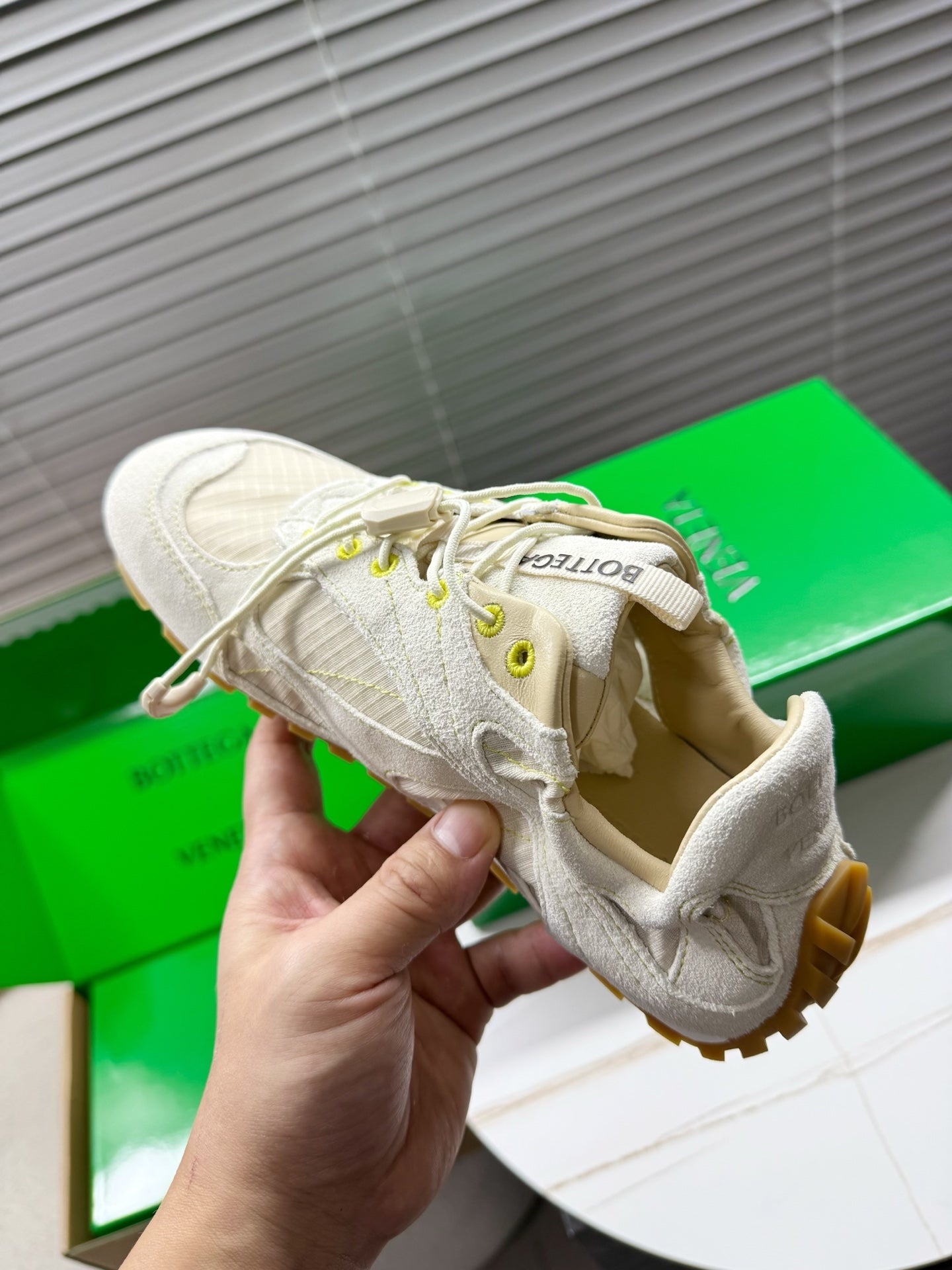 BV Orbit Flash Sneaker Lemon Suede & Nylon Lace-Up 609405