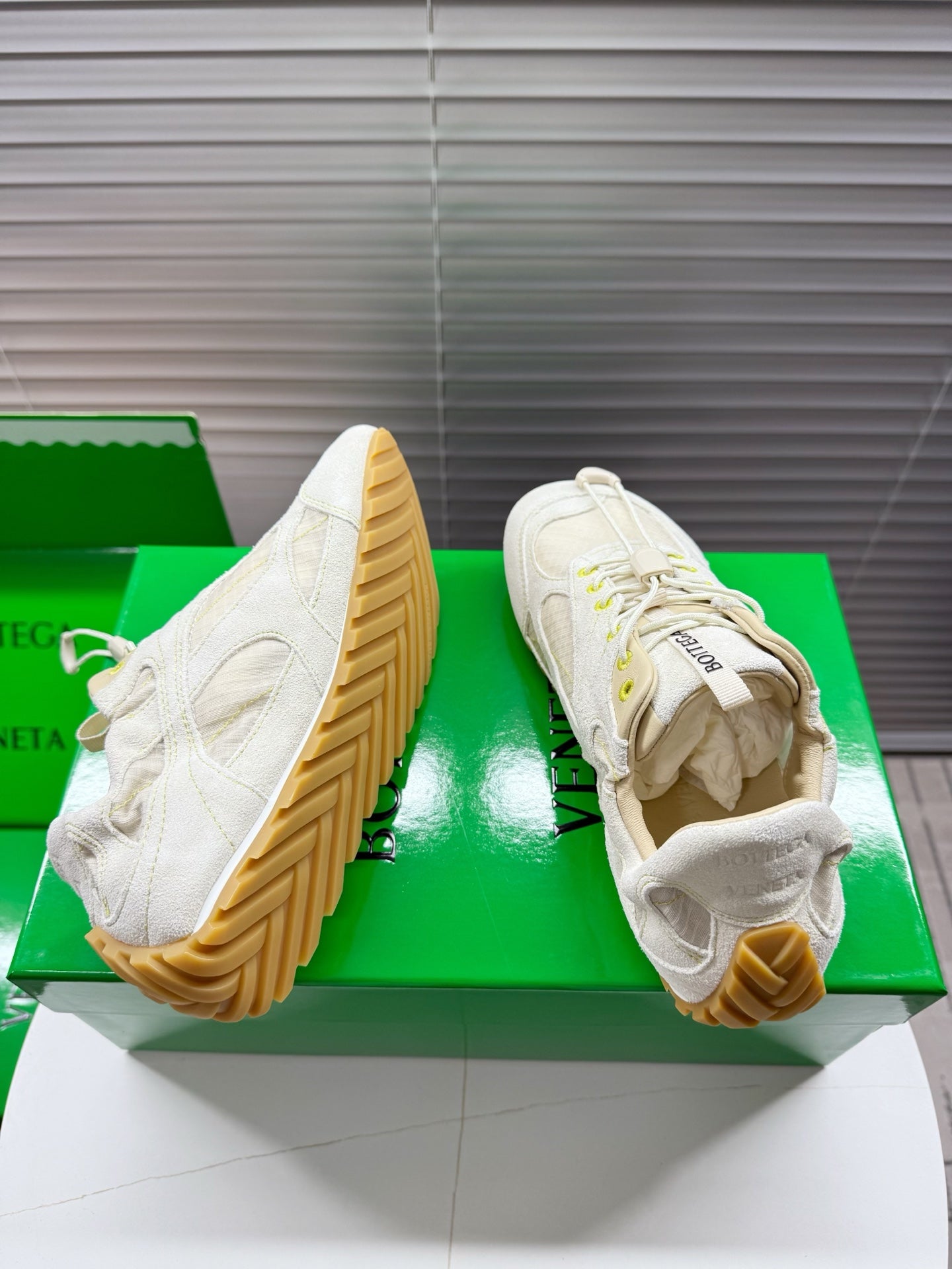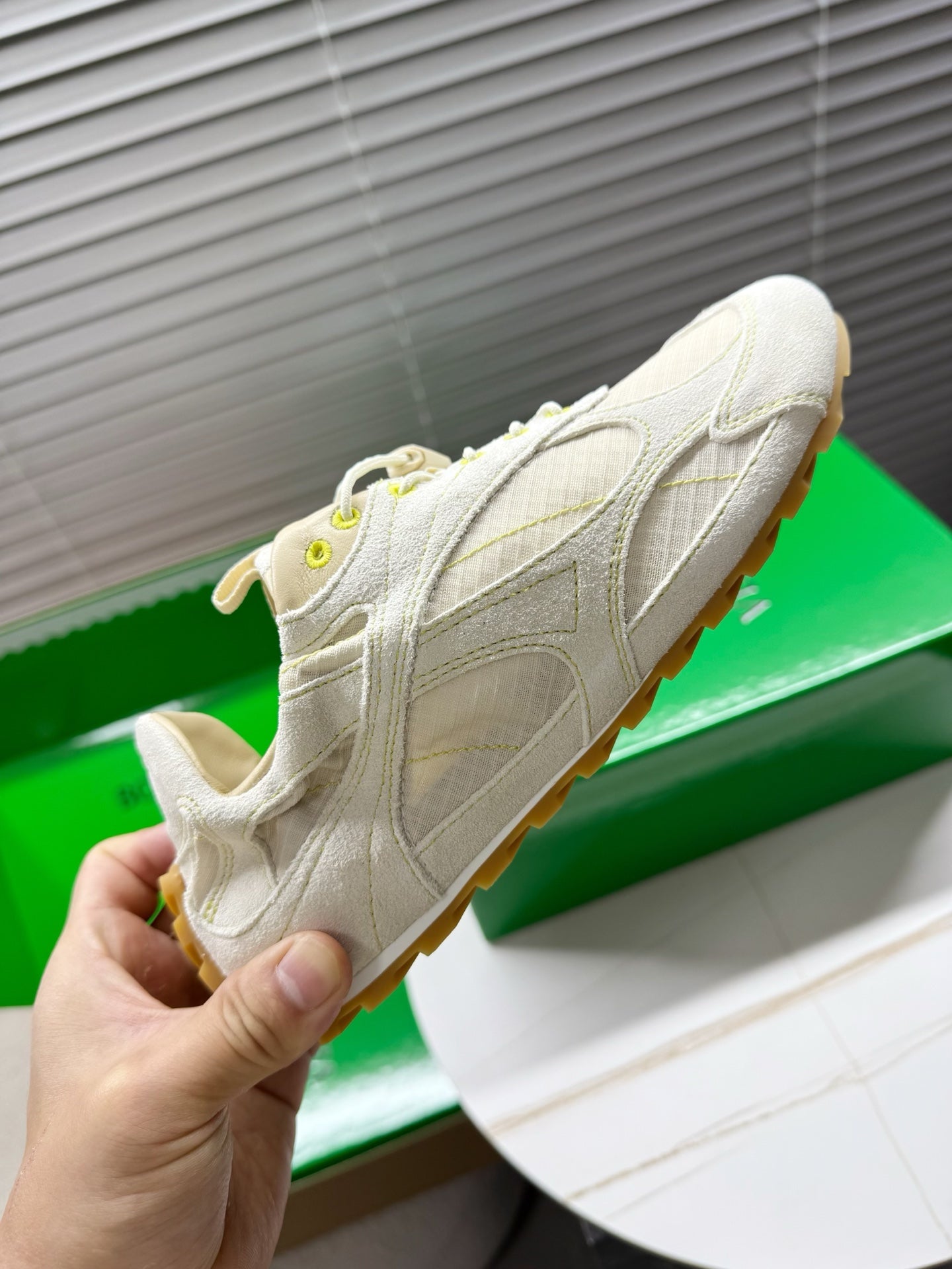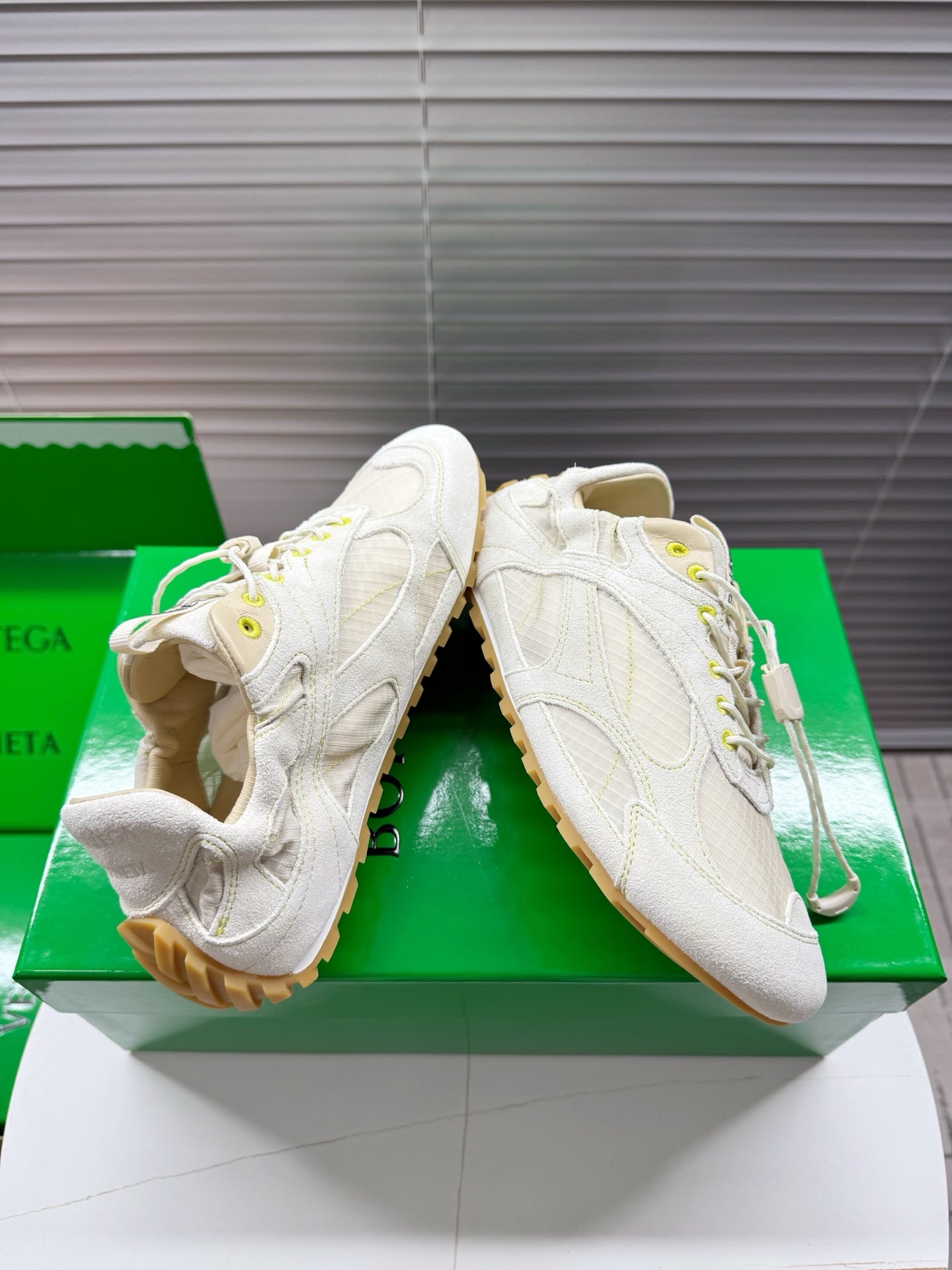 BV Orbit Flash Sneaker Off White Suede & Nylon Lace-Up 609404