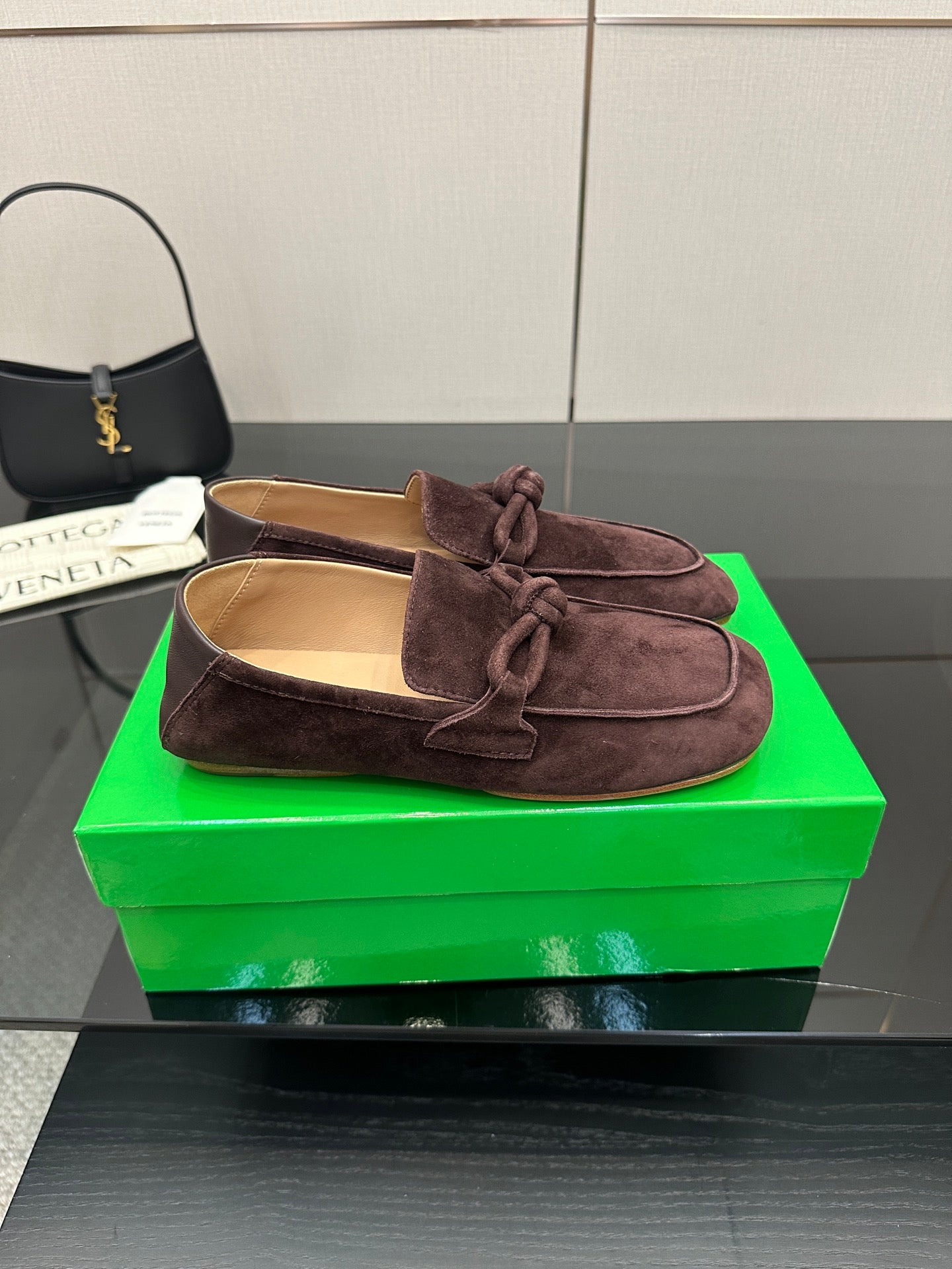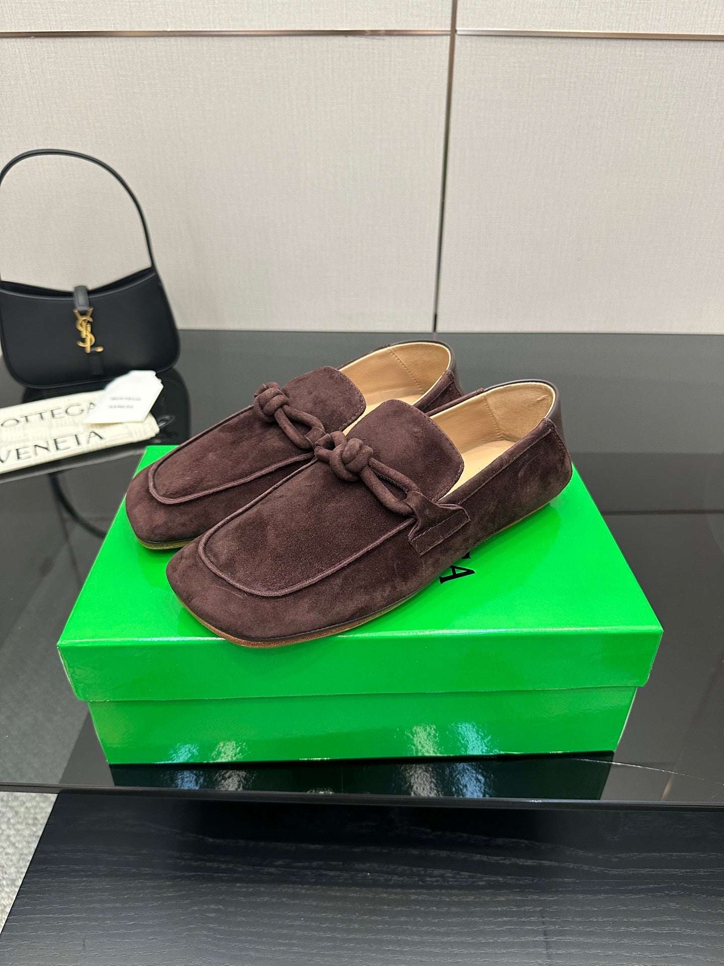 BV Astaire Loafers Knotted Dark Brown Crinkled-Suede Leather 616650