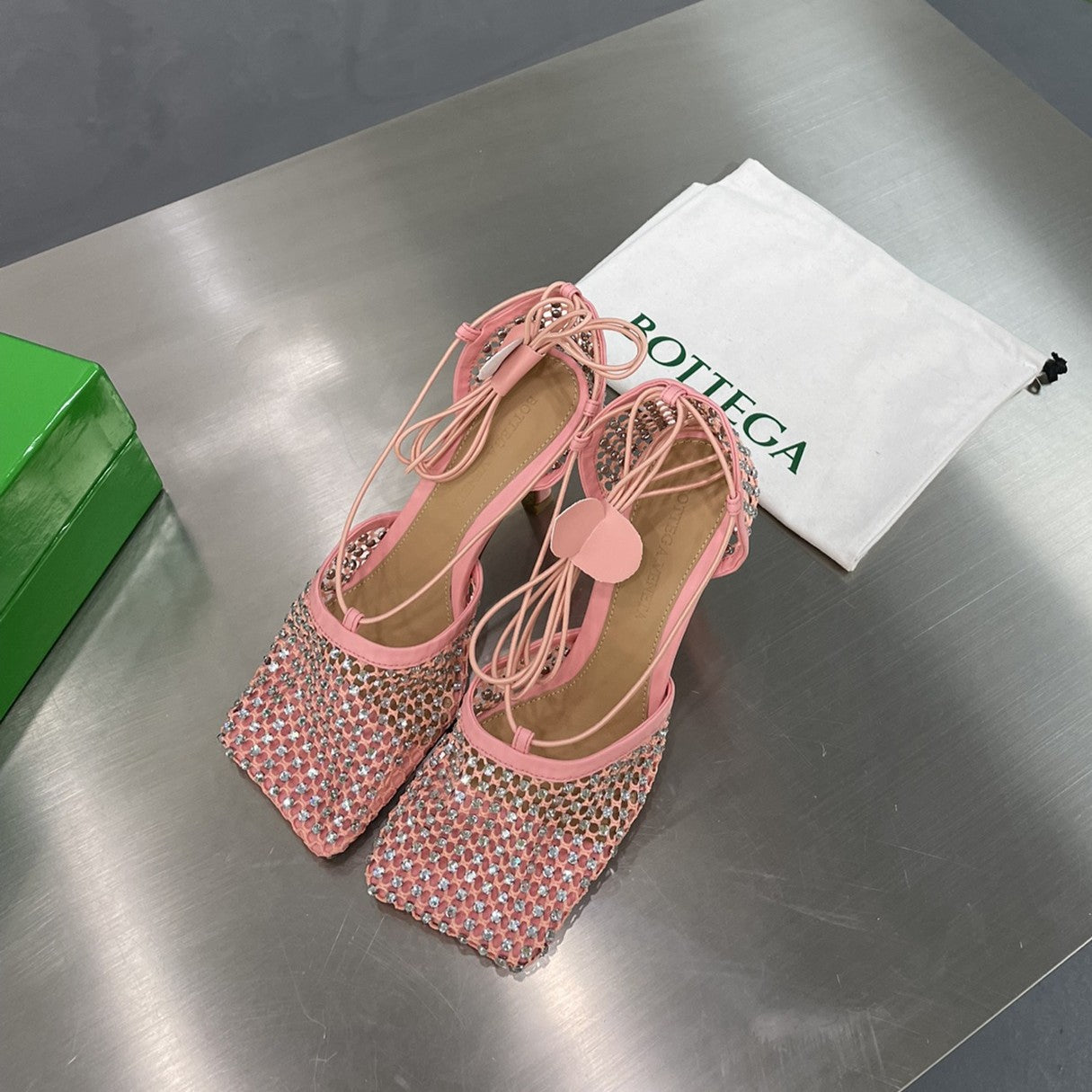 BV Stretch Lace-Up With Crystal Sandal 9cm Pink Mesh And Leather 568844