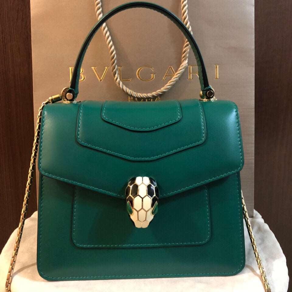 BVL Serpenti Forever Medium Top Handle Bag 20cm Emerald Green Calfskin GHW 188639
