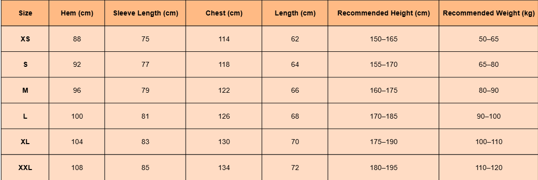 - For more information, please see the size guide below