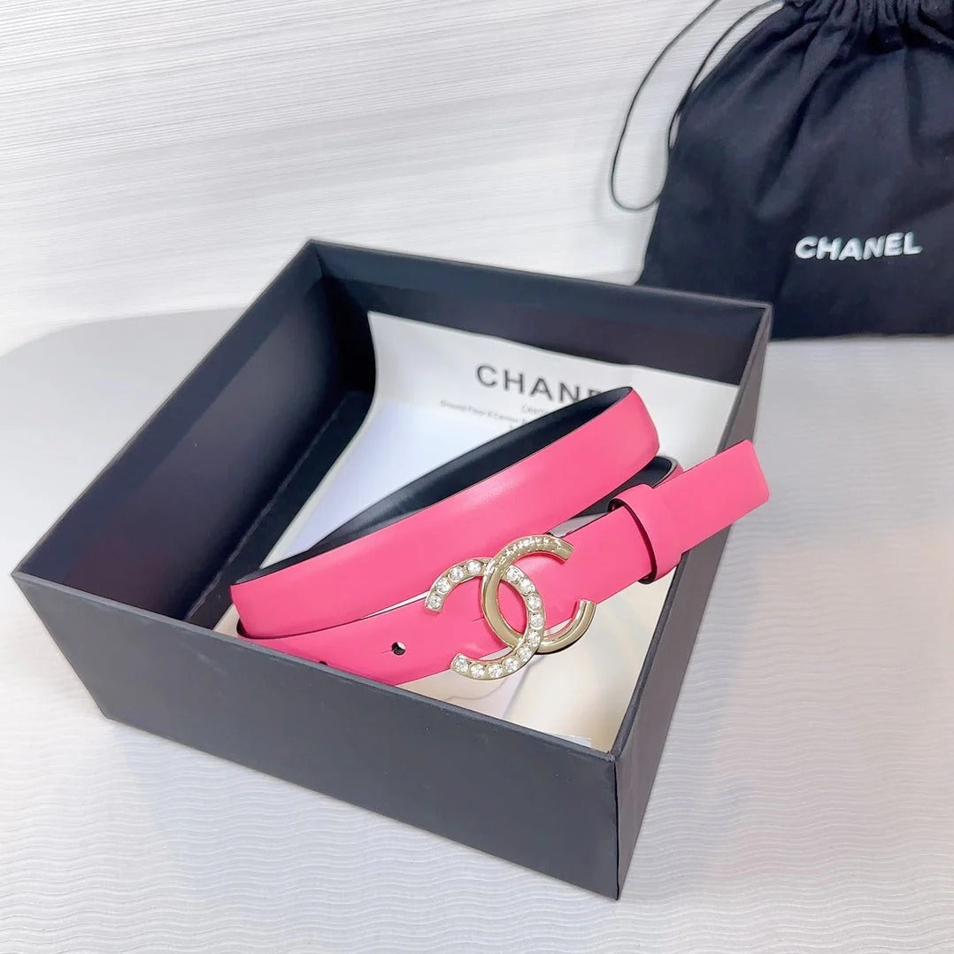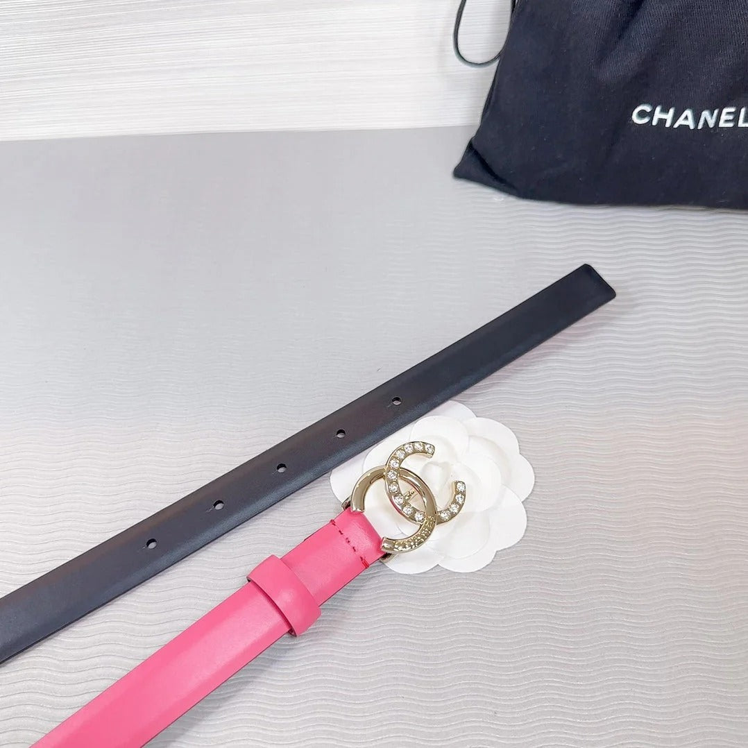 CC BELT 20 MM IN DEEP PINK SMOOTH CALFSKIN GOLD HARDWARE ATTACH RHINSTONE