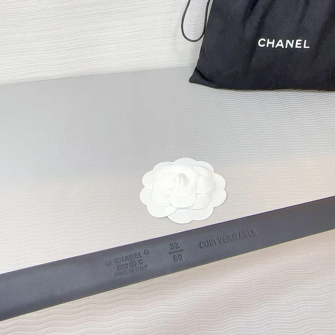 CHANEL BELT 3CM IN BLACK LAMBSKIN SILVER HARDWARE