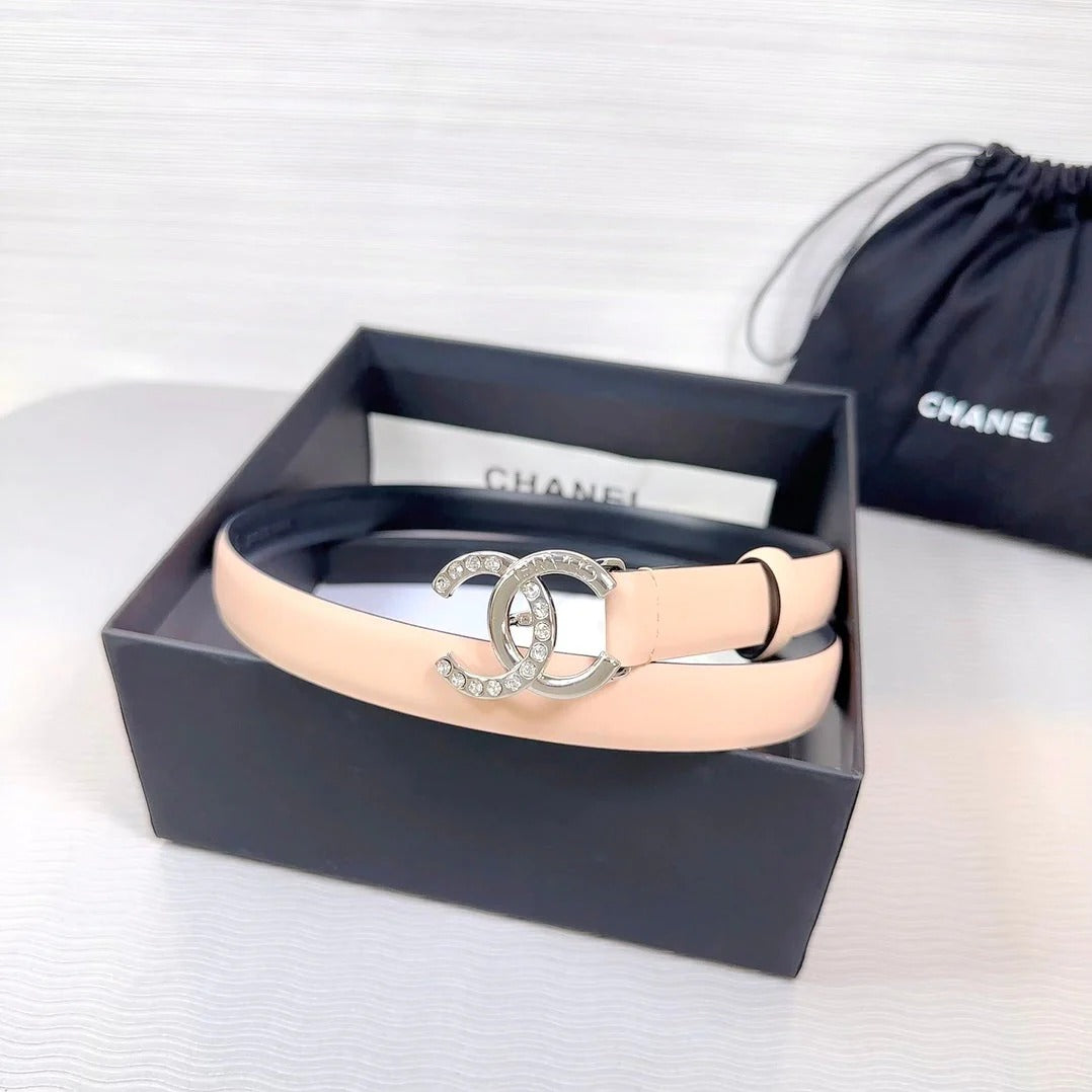 CC BELT 20 MM IN BEIGE CREAM SMOOTH CALFSKIN GOLD HARDWARE ATTACH RHINSTONE