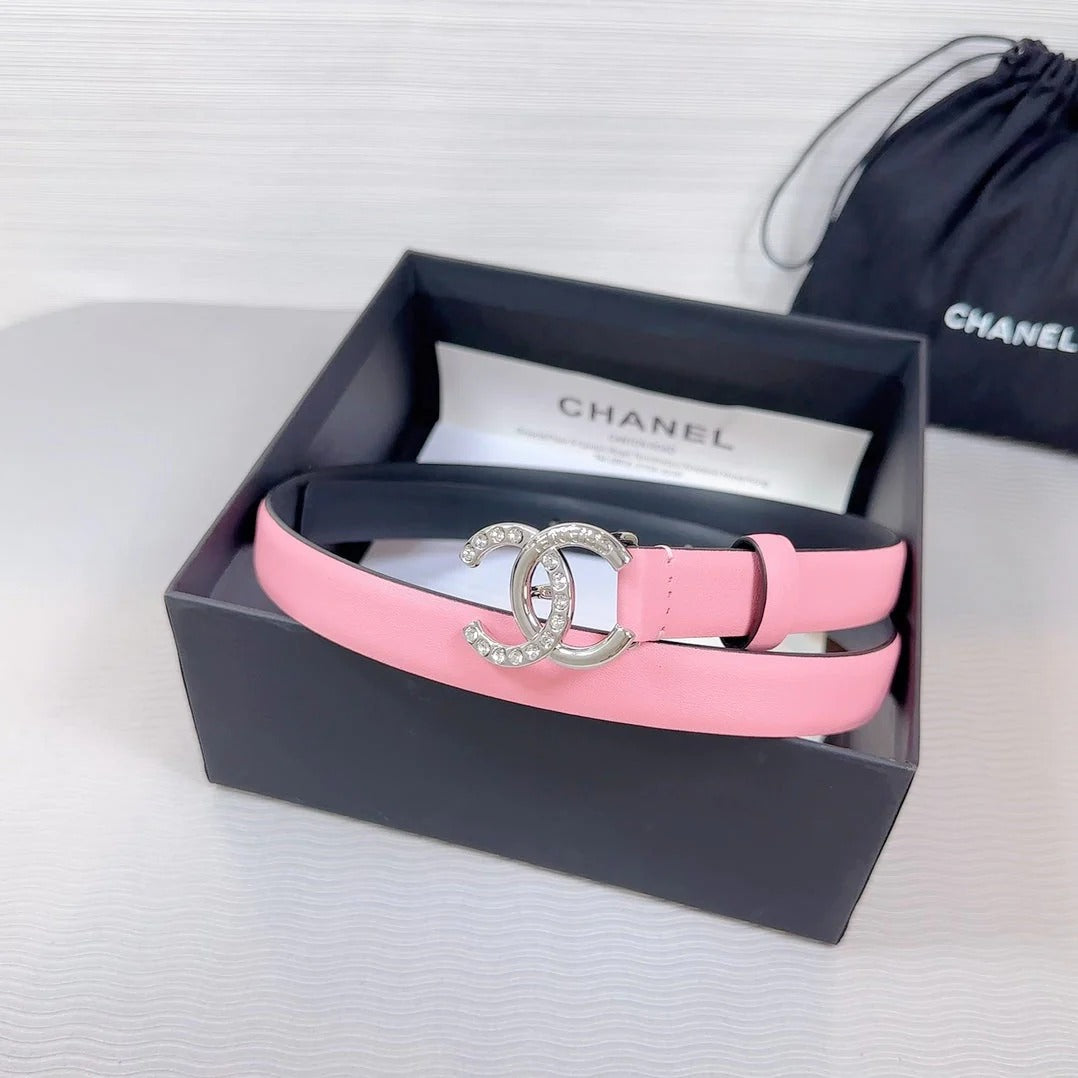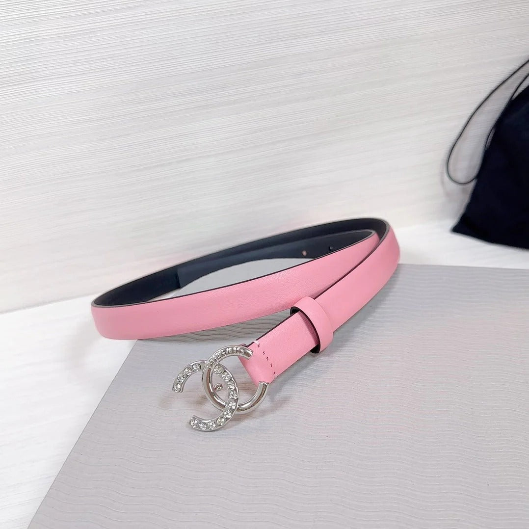 CC BELT 20 MM IN TAFFY PINK SMOOTH CALFSKIN SILVER HARDWARE ATTACH RHINSTONE
