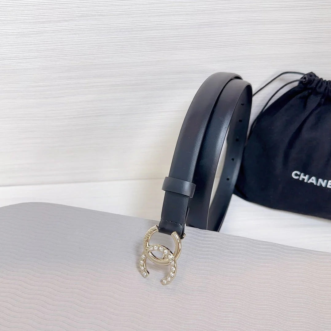 CC BELT 20 MM IN BLACK SMOOTH CALFSKIN GOLD HARDWARE ATTACH RHINSTONE