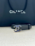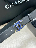 CC 30MM BELT IN BLACK SMOOTH CALFSKIN WITH NAVY BLUE METAL LOGO