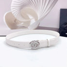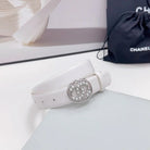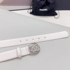 CC 30MM BELT IN WHITE CALFSKIN SILVER HARDWARE ATTACH PEARLS